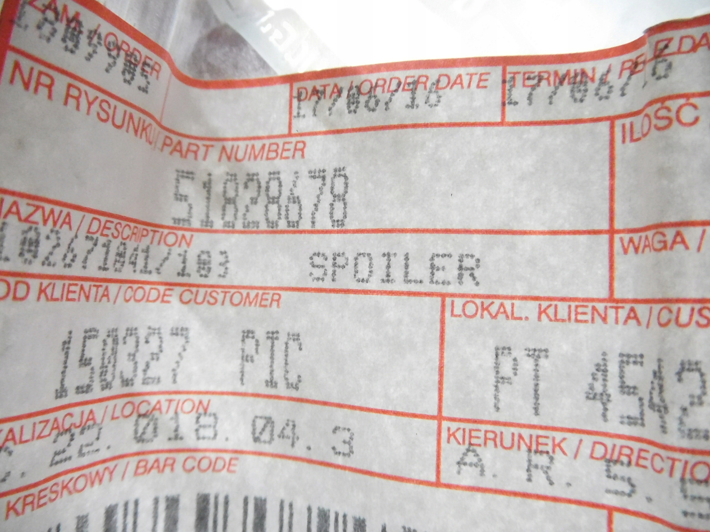 | Каталожный номер детали: | 51828678 |