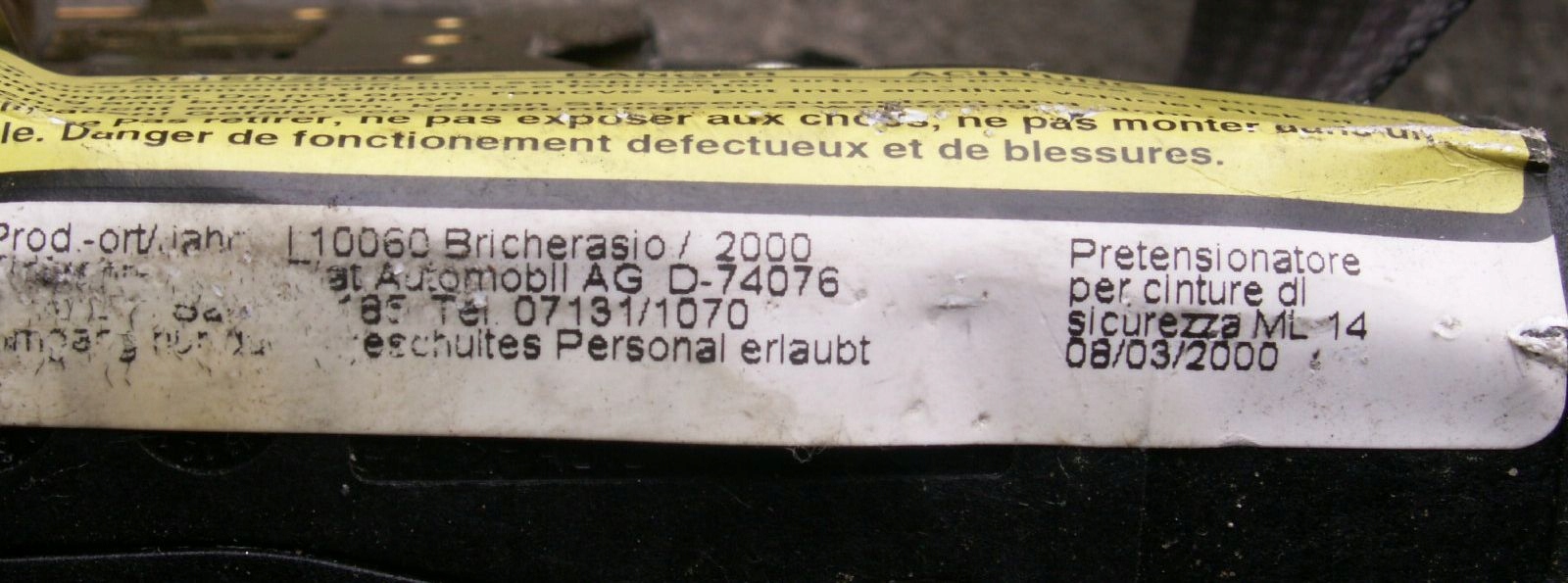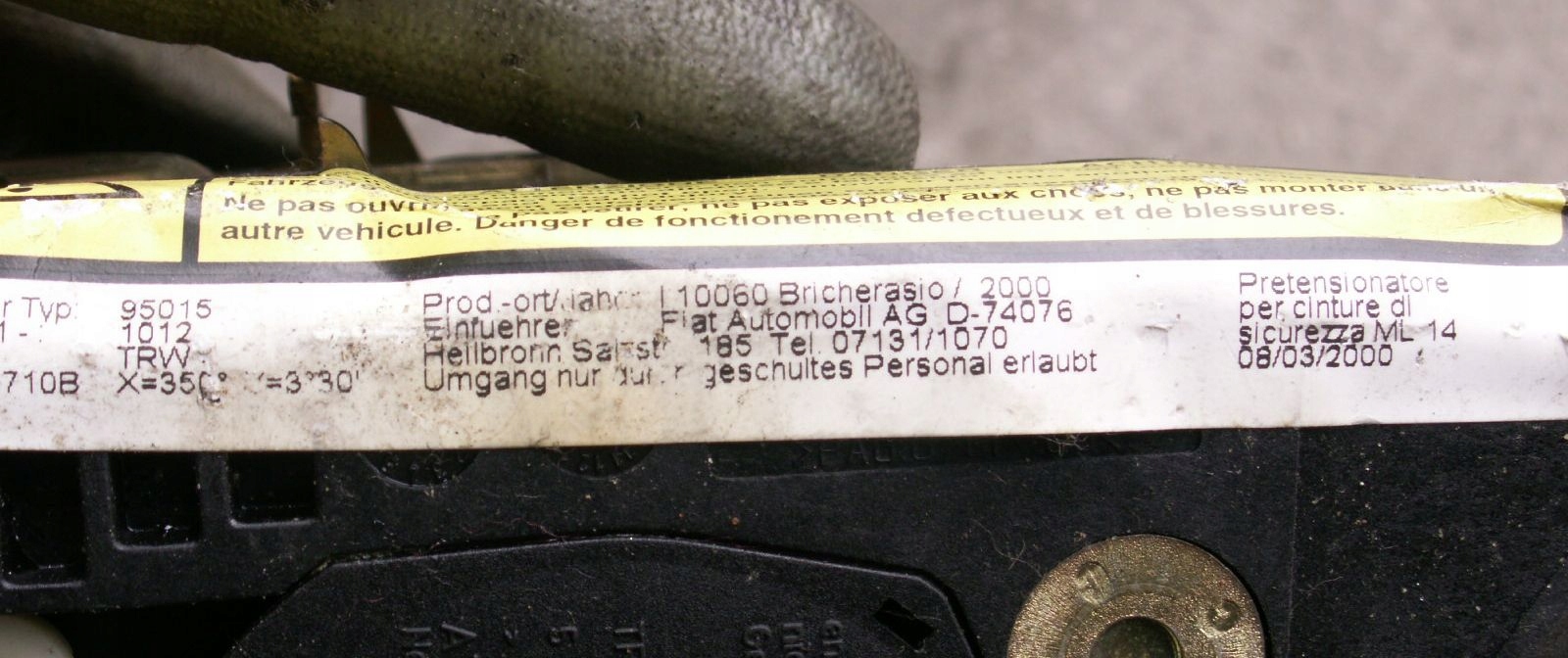 Есть ли гарантия на Ремень безопасности передний правый перед fiat punto 2 2 3d 735372896?