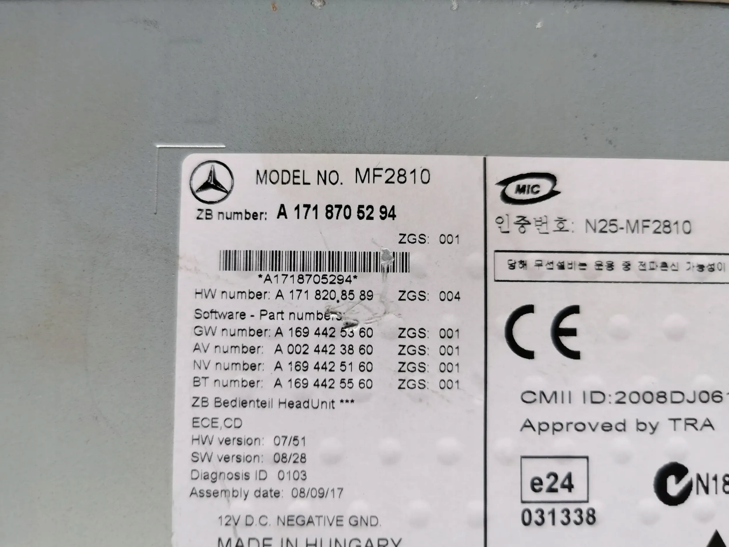 Есть ли гарантия на Mercedes slk r171 w171 радио cd оригинал a1718705294 europa?