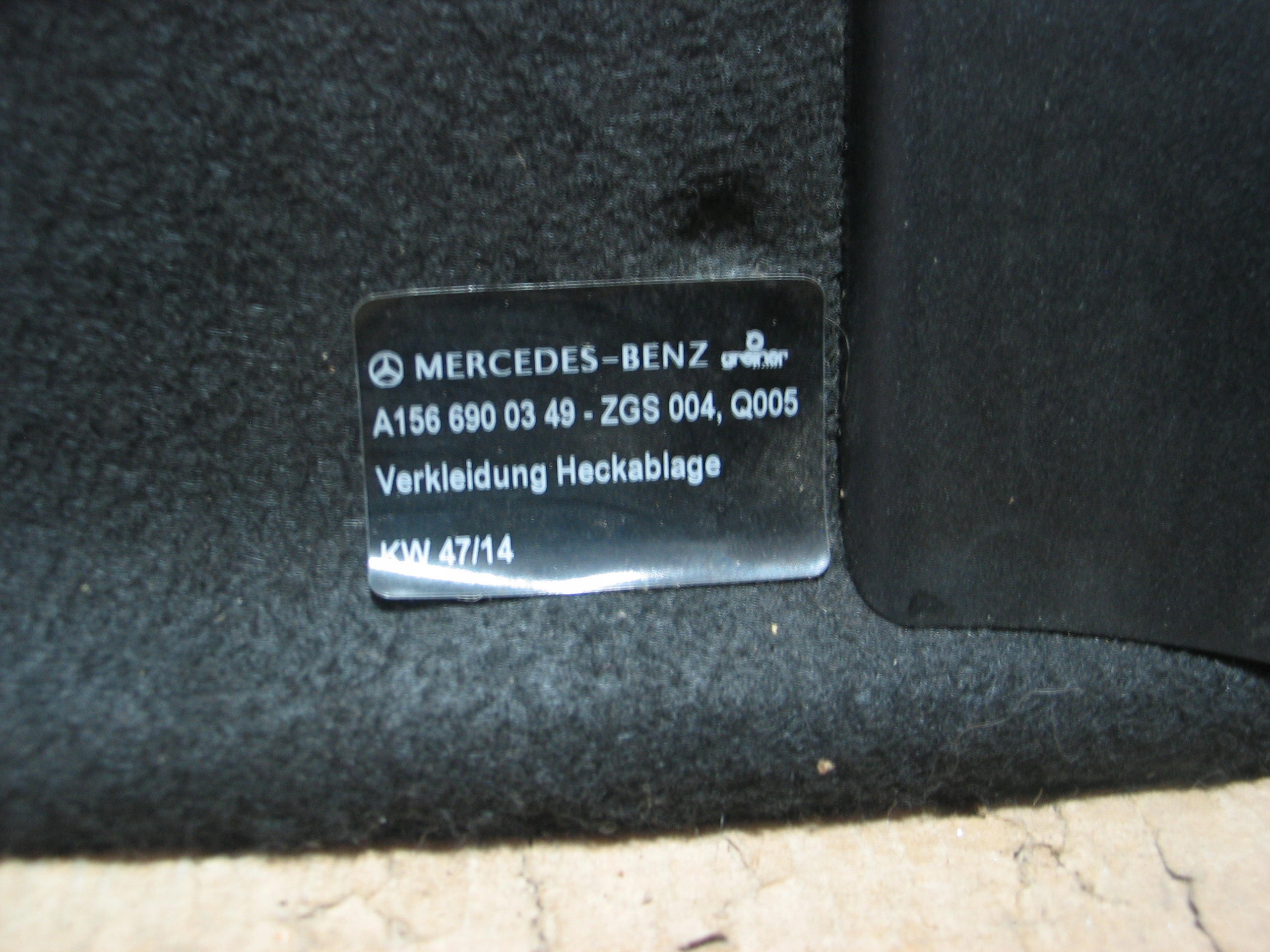 | Каталожный номер детали: | Mercedes, GLA, X156, W156, półka, bagażnika, tylna, A1566900349 |
