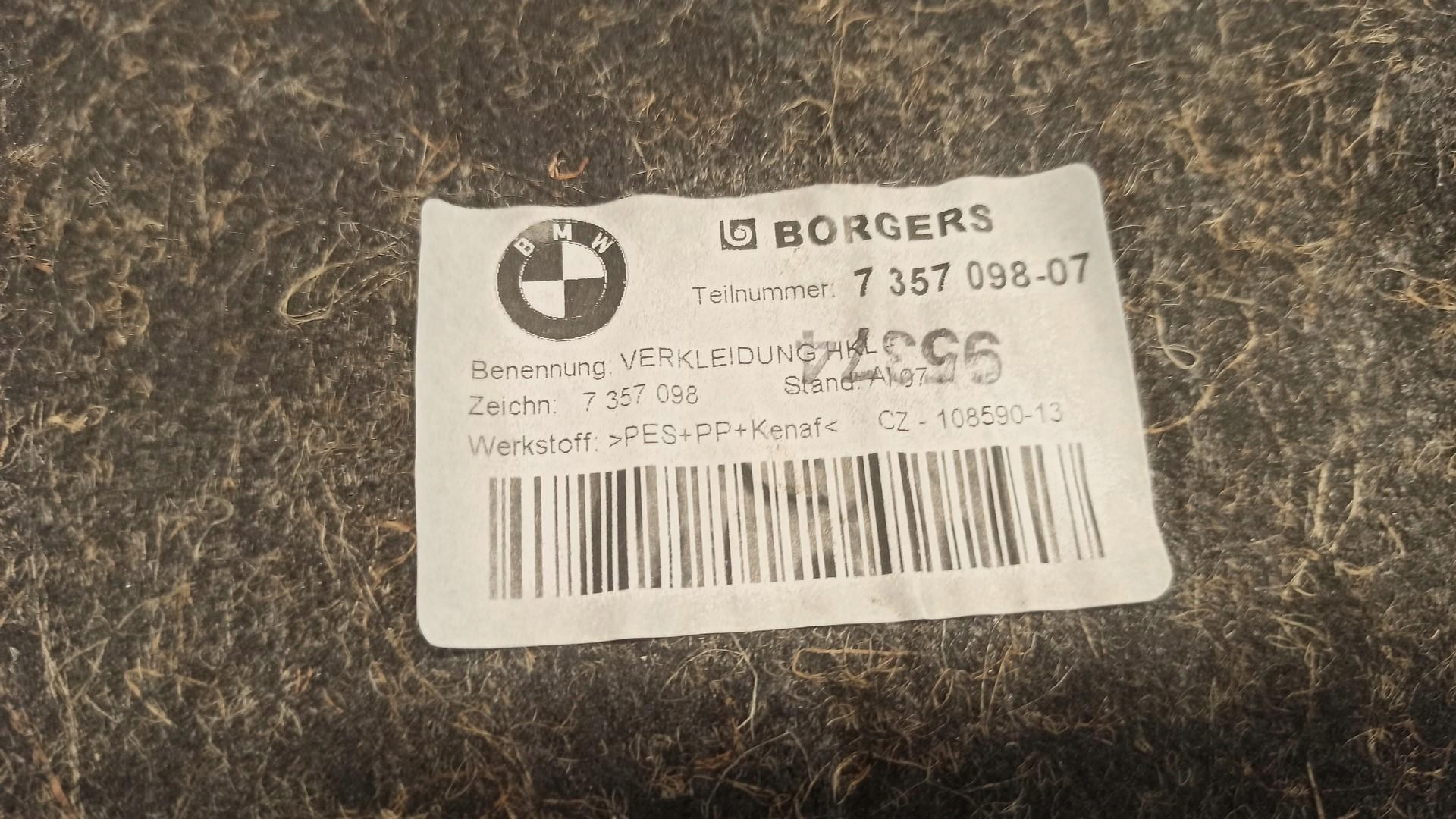 Bmw 7 g11 обивка защита крышки багажника 7357098