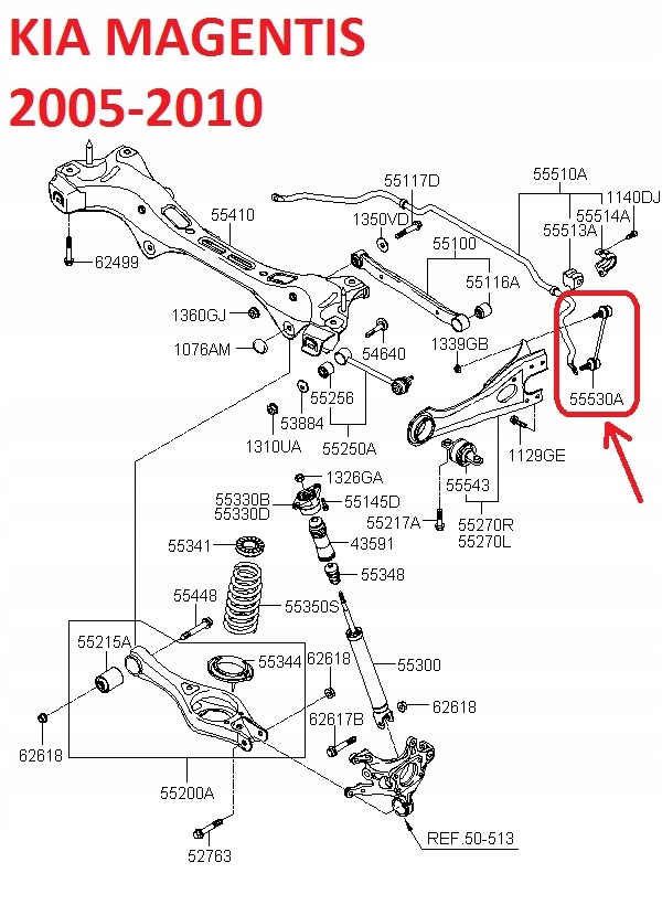 Соединитель стабилизатора заднего kia magentis 2005-2010 555302g000 555302g500