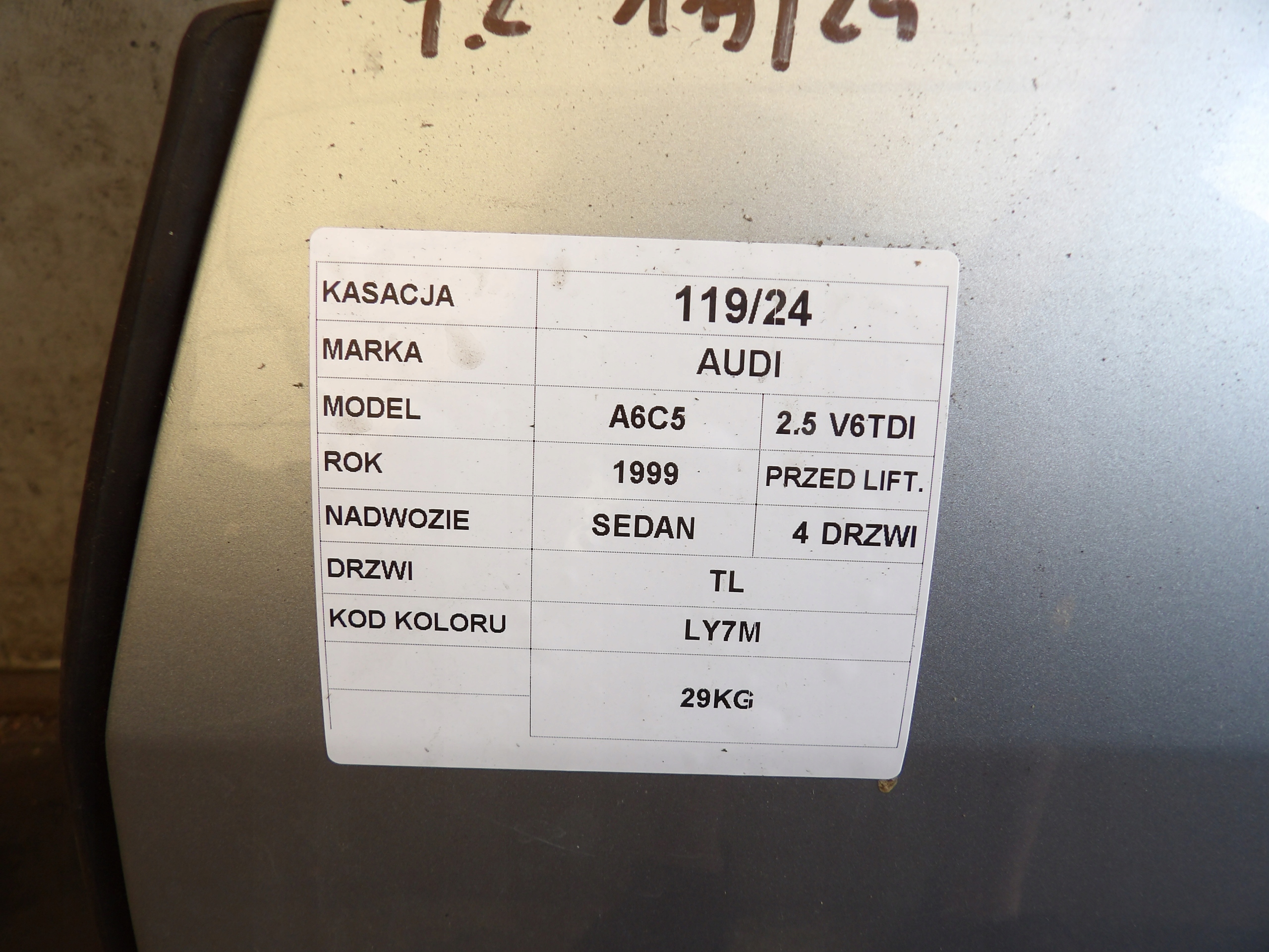Audi a6 c5 дверь задние левая sedan lak. ly7m
