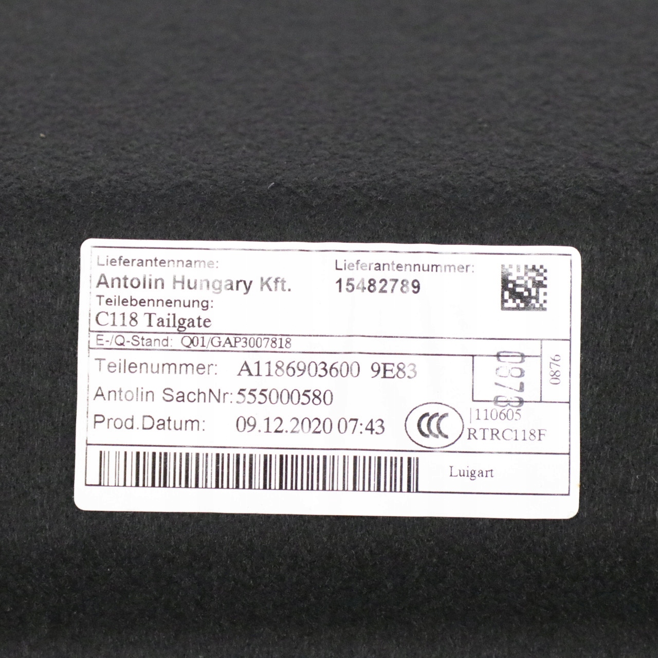 Mercedes cla c118 защита обивка крышки крышки багажника a1186903600