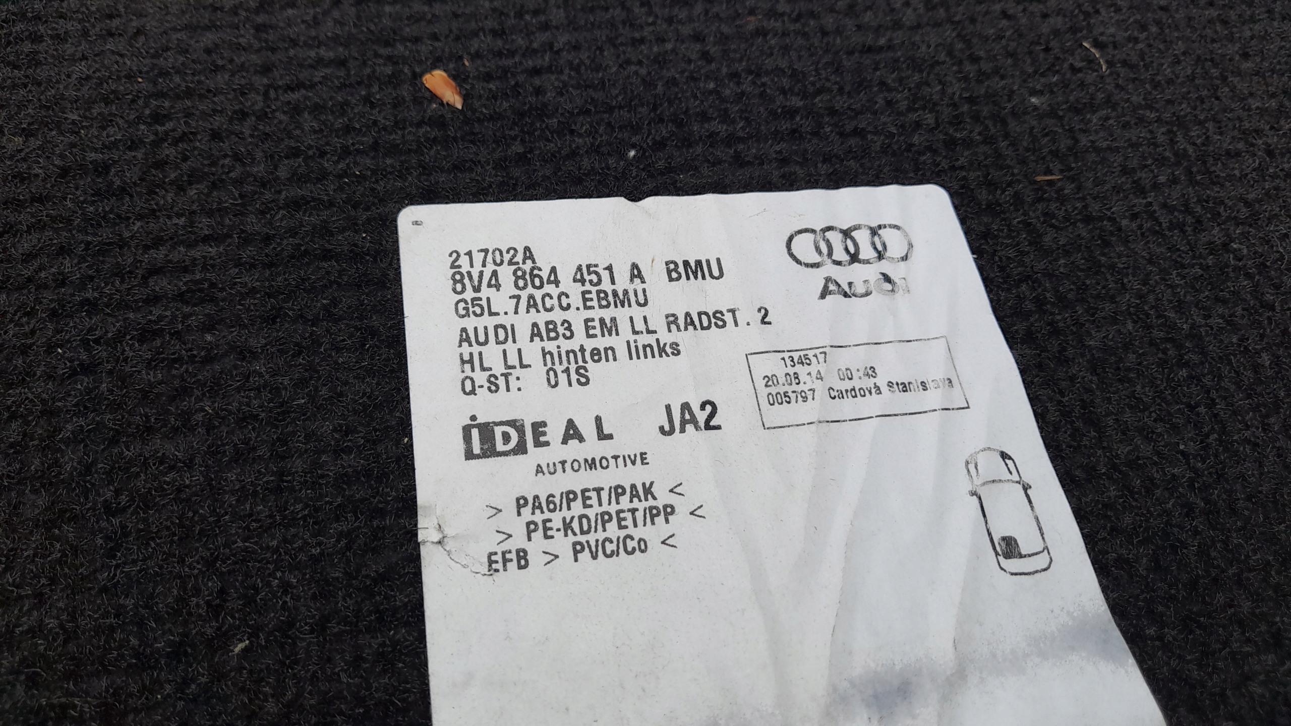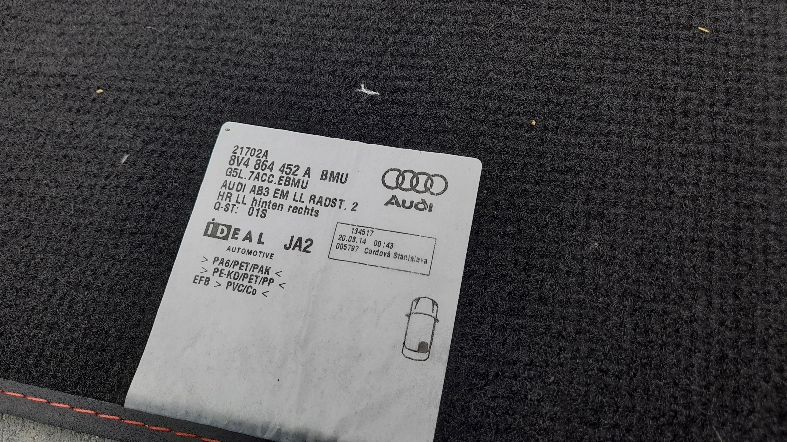 Audi a3 s3 8v 16-20 коврики велюровые комплект 8v1864436 usa