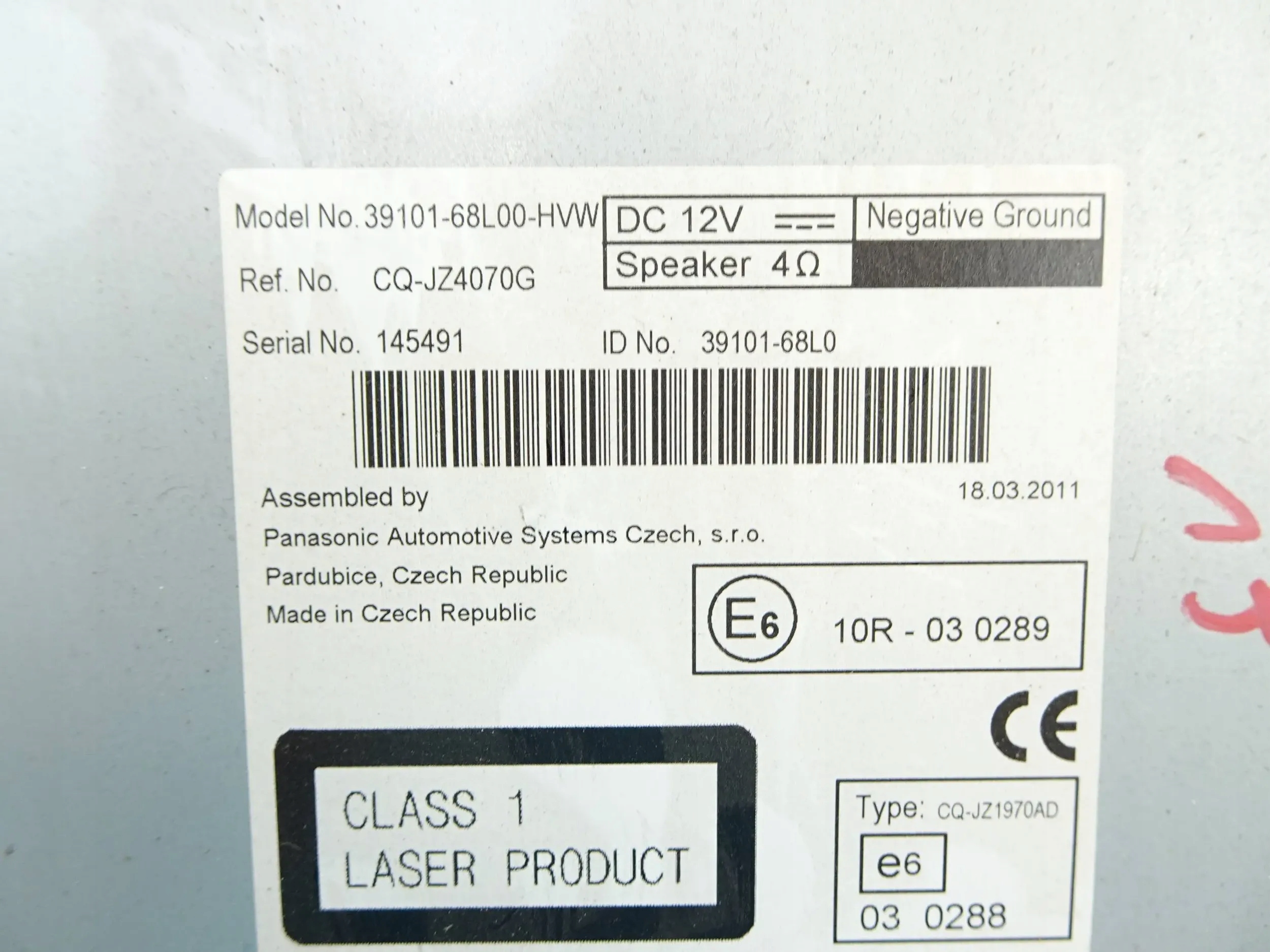 | Каталожный номер детали: | 3910168L00 |