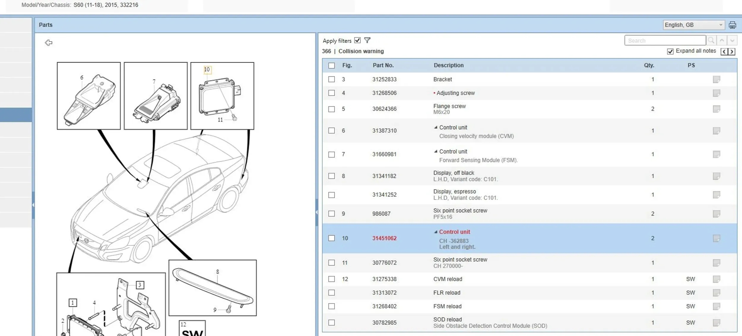 Volvo s60 2015 датчики поперечина движения
