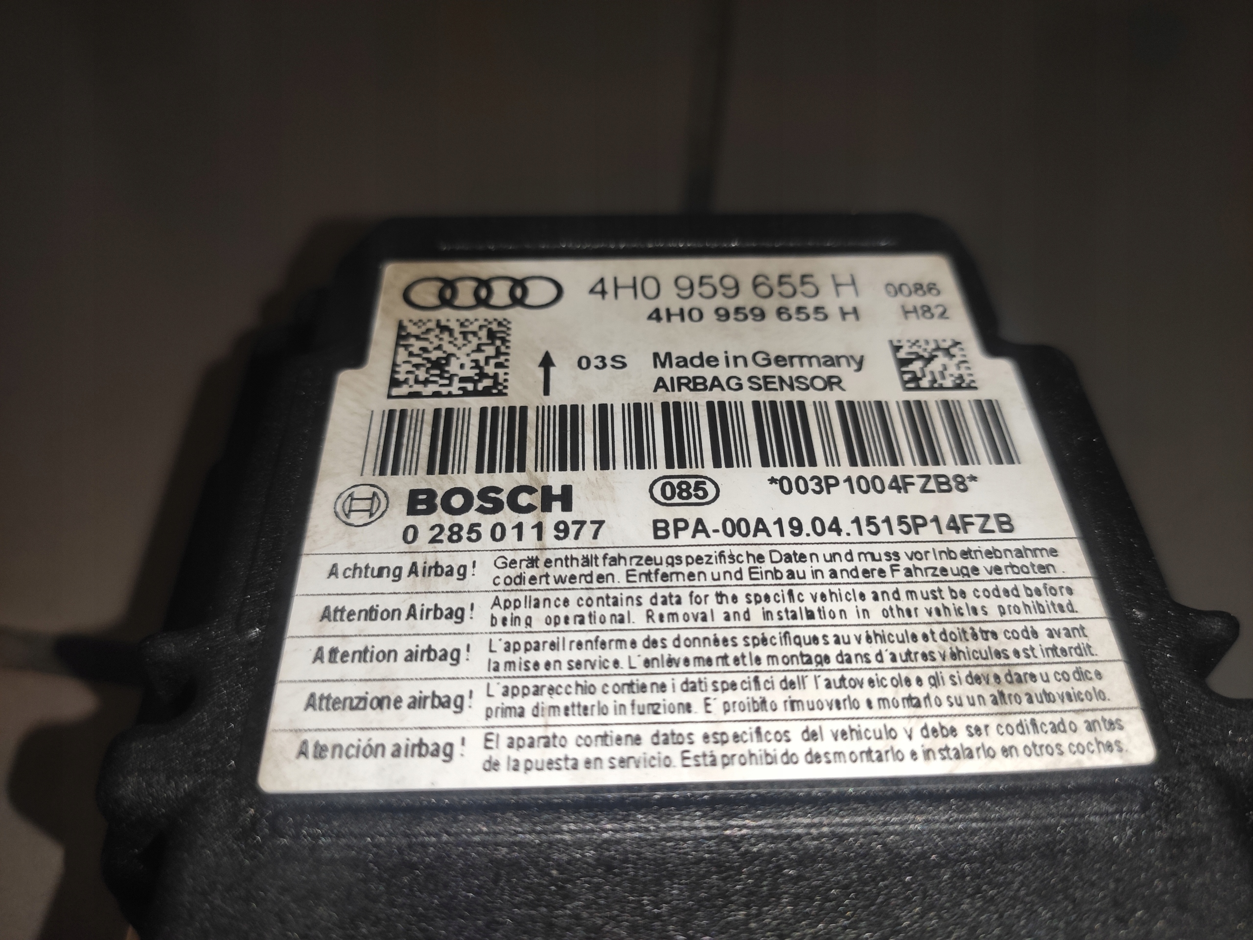 Каталожный номер детали: 4H0959655H, MODUL, PODUSZEK, POWIETRZNYCH, AIR, BAG