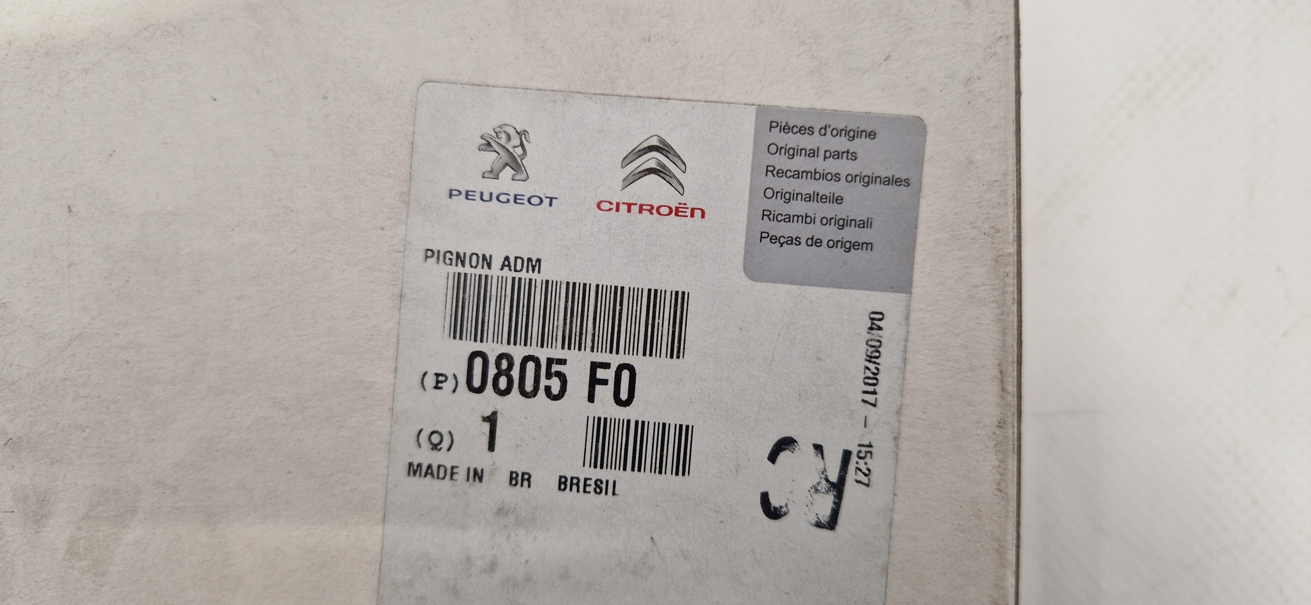 | Оригинальный каталожный номер: | 0805F0 |