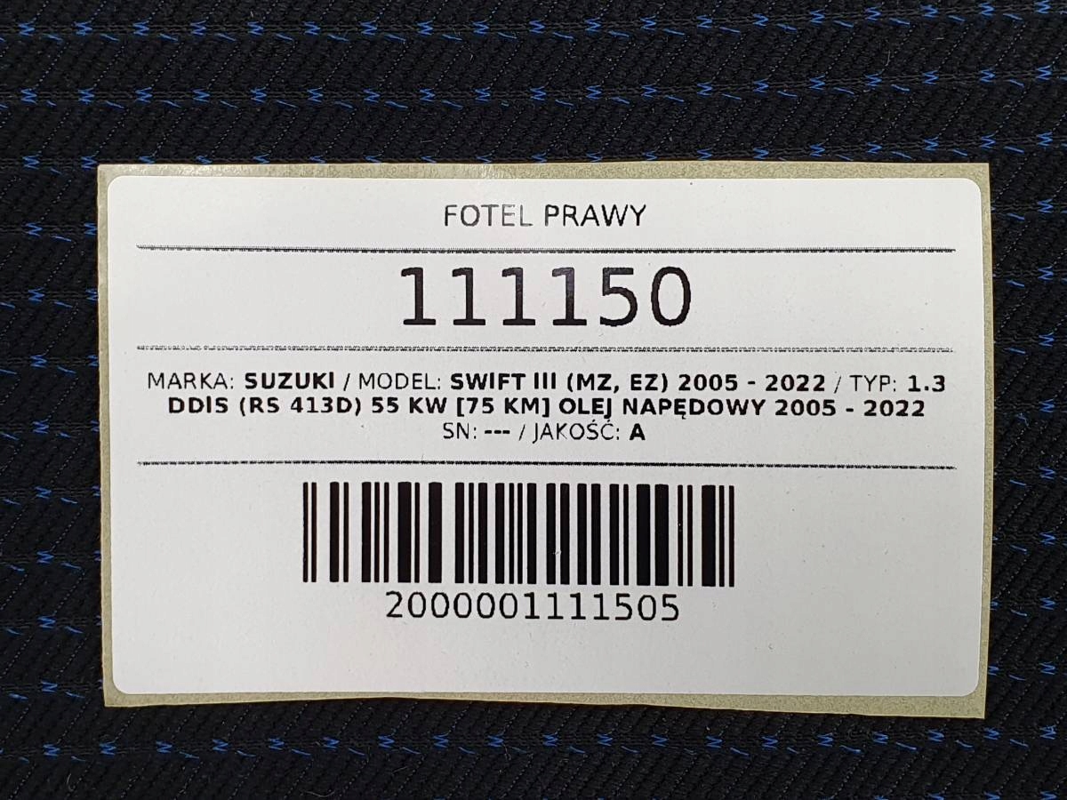 Сиденье правый перед suzuki swift mk6 iv iii 3d дверь