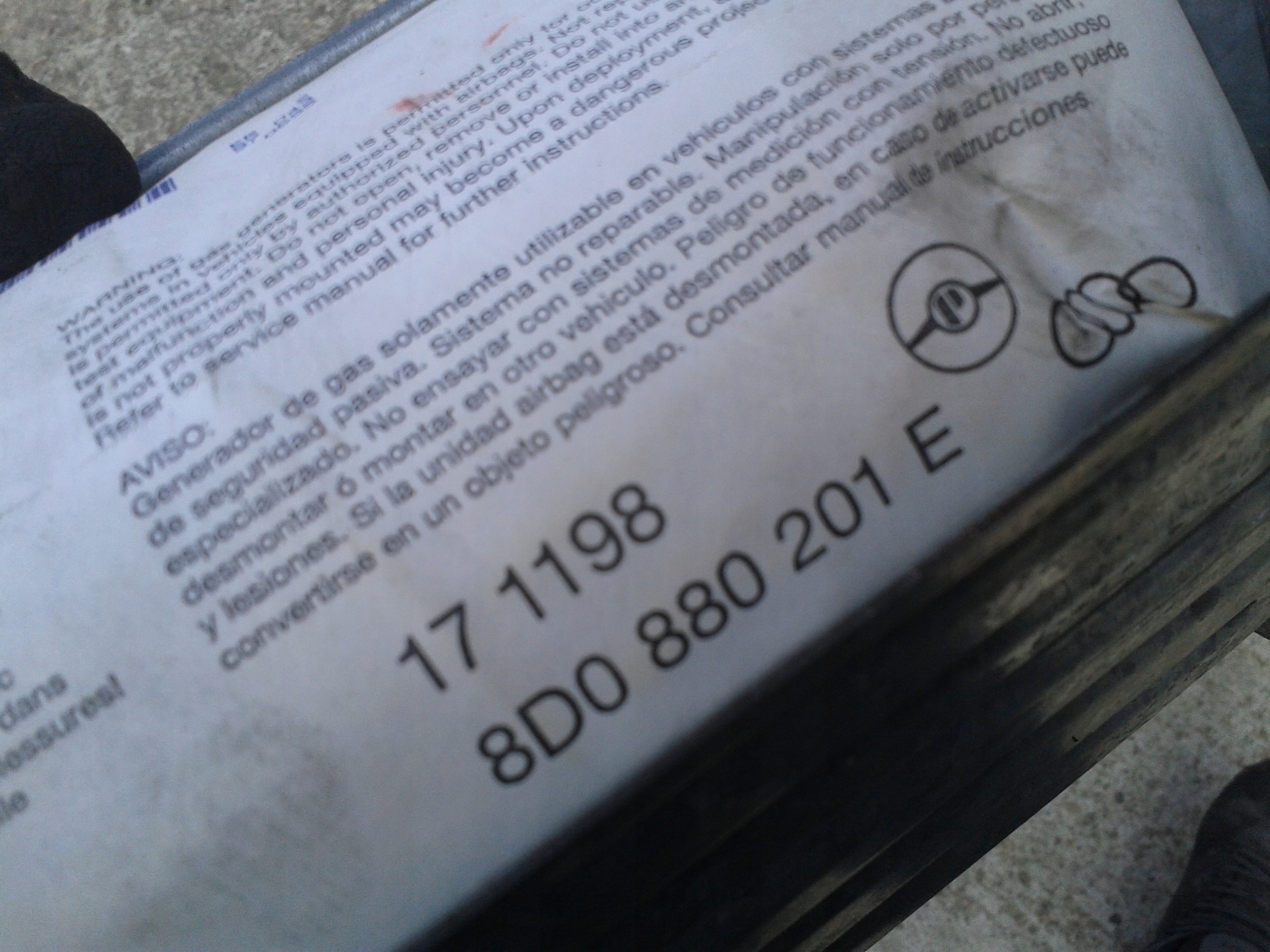 Подушка пассажира audi a4 b5 8d0880201e europa