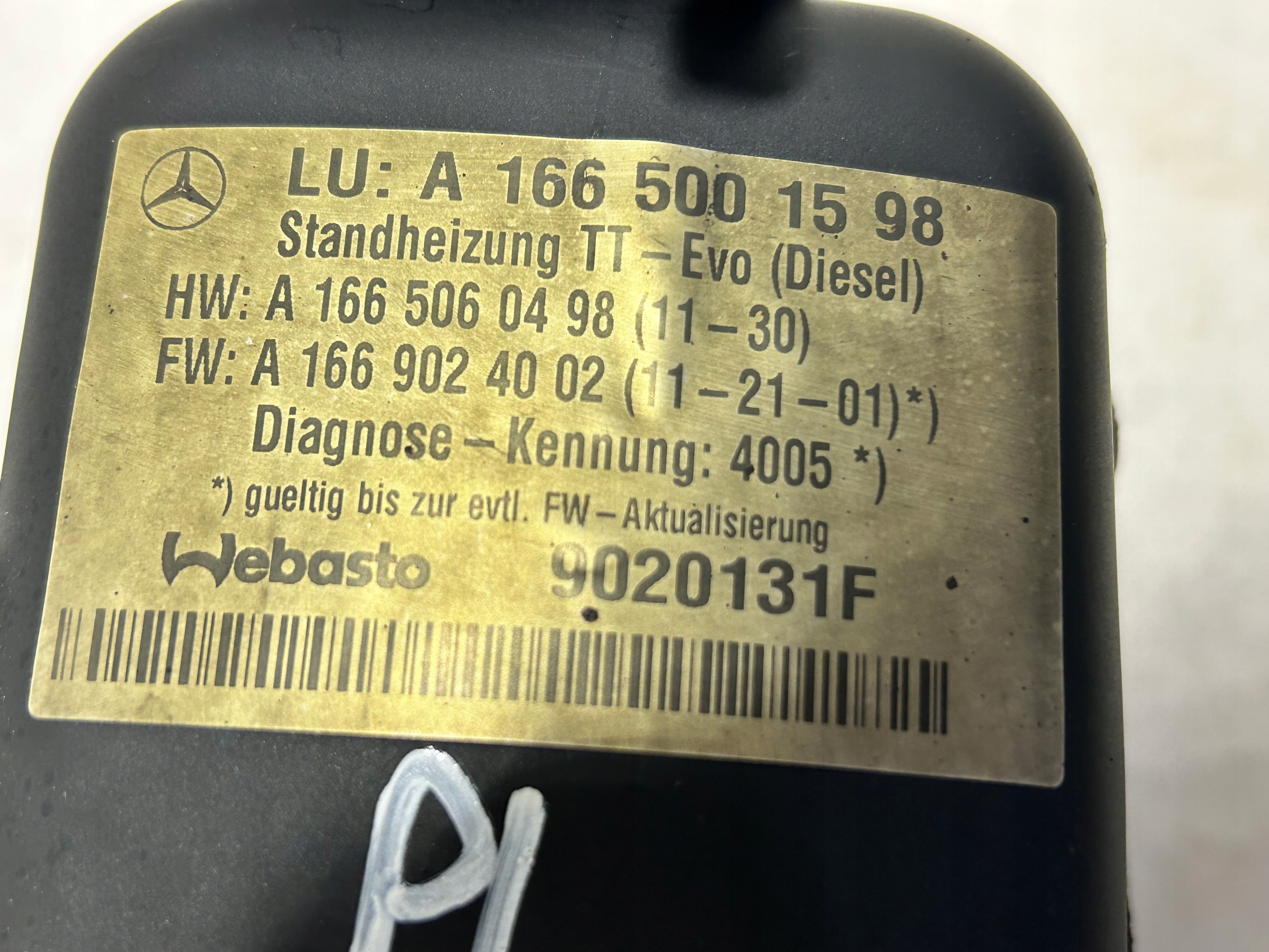 Есть ли гарантия на Mercedes ml w166 gl x166 gle webasto pilot 1665001598?