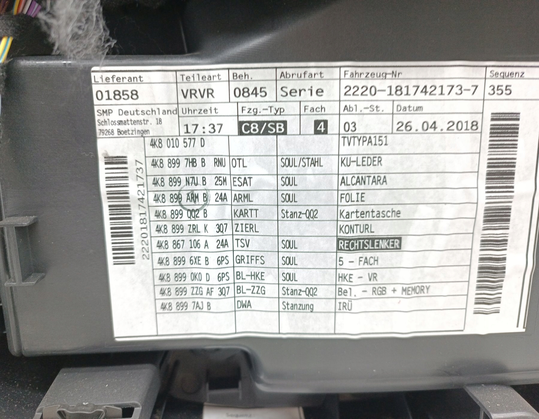 Обивка обшивка дверь правый передний перед подсвечиваемый audi a7 c8 4k
