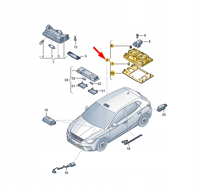Seat ibiza v kj1 interior led reading light 6f0947105awhi