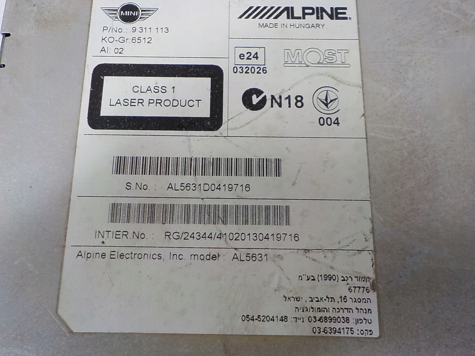 Производитель запчасти: alpine