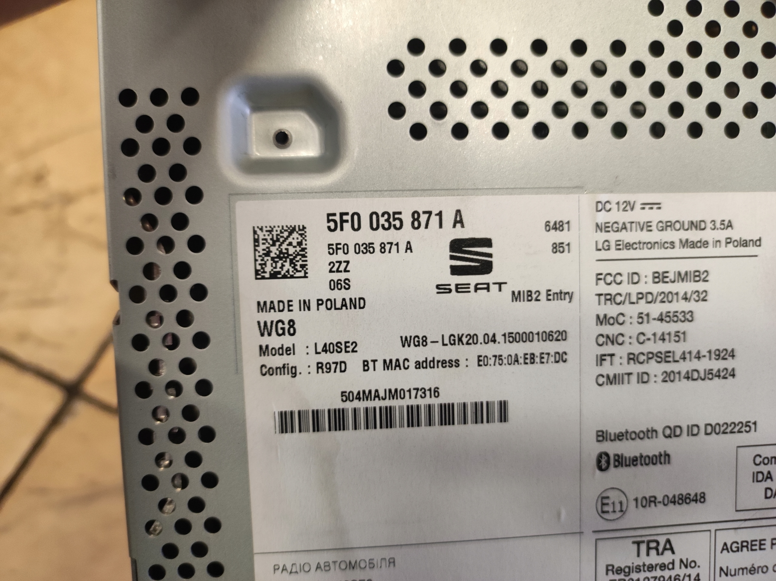 | Каталожный номер детали: | 5F0035871A |