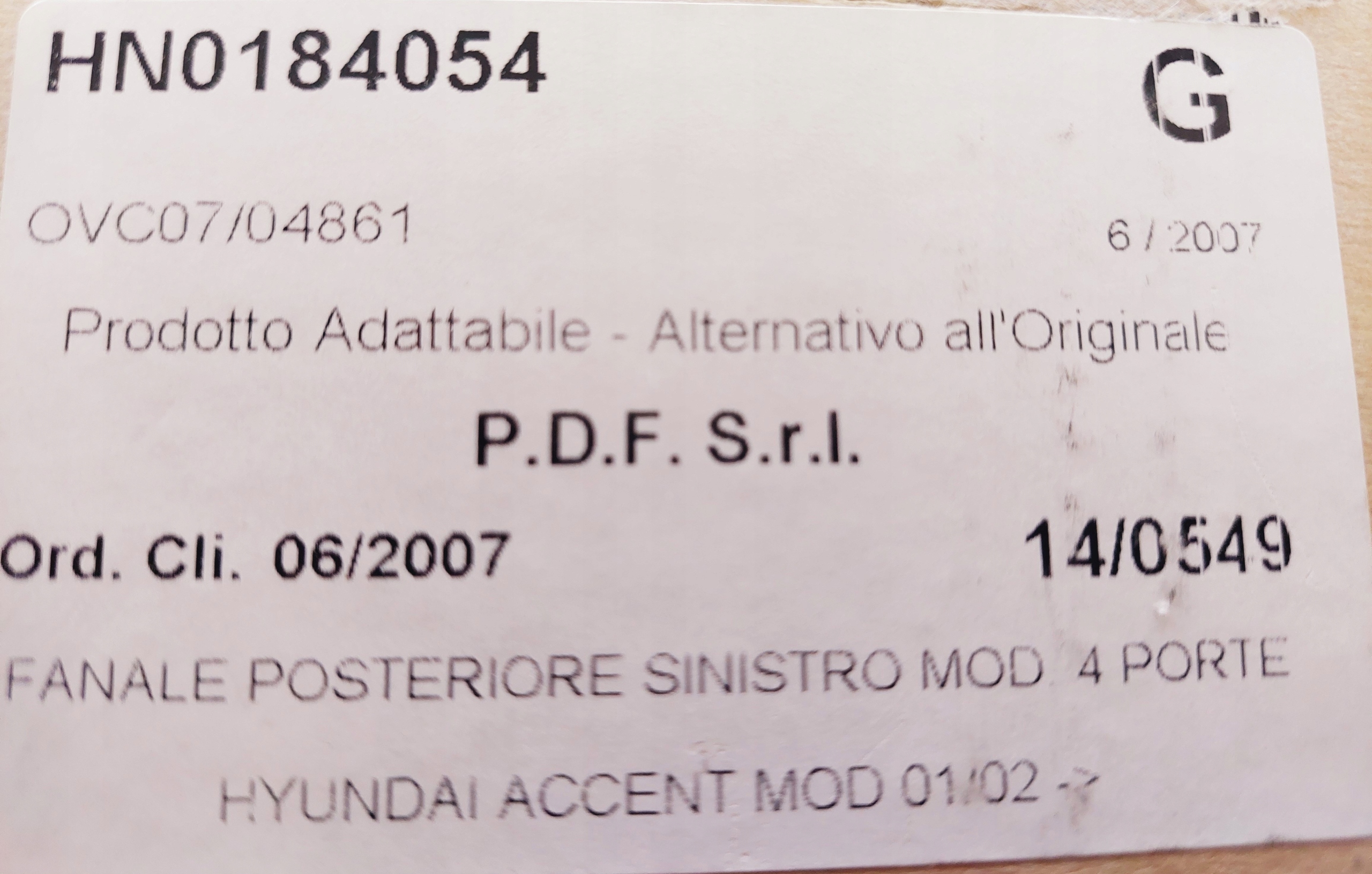 | Каталожный номер детали: | HN0184054 |