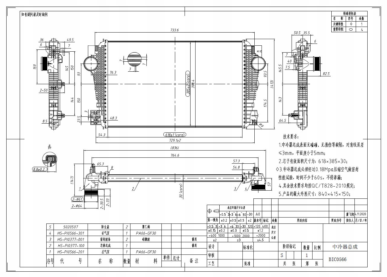 Интеркулер радиатор воздуха впускной vw amarok 2.0d 11.11-