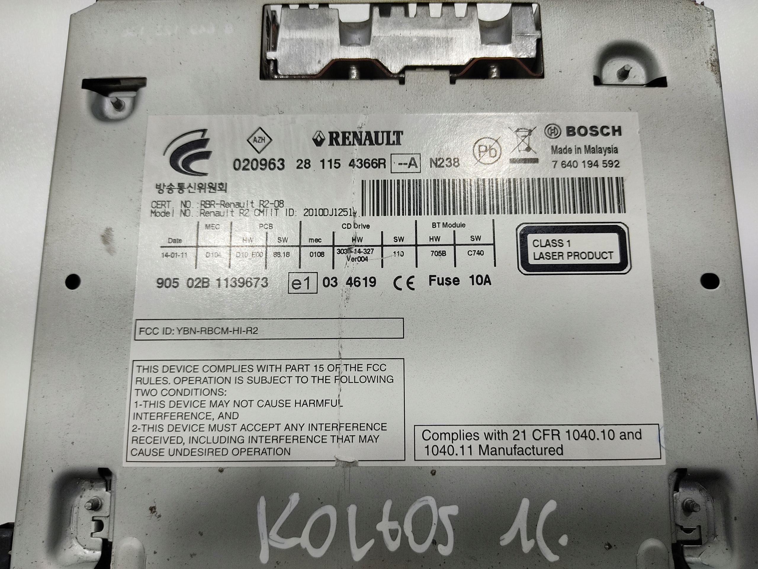 | Каталожный номер детали: | FABRYCZNE, RADIO, CD, RENAULT, KOLEOS, I, 281154366R, 2008-2015, KOD |