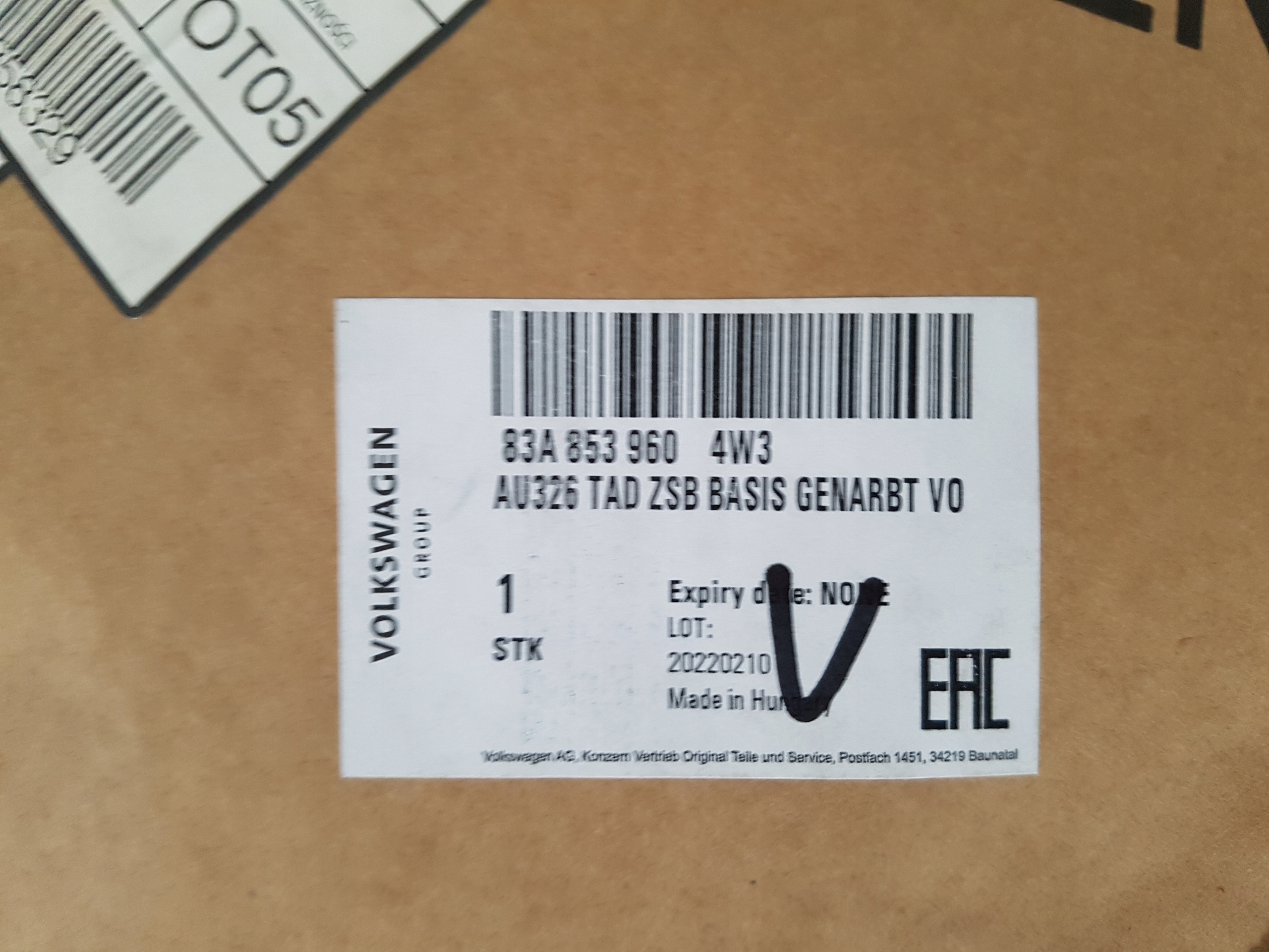 | Оригинальный каталожный номер: | 83A853960 |