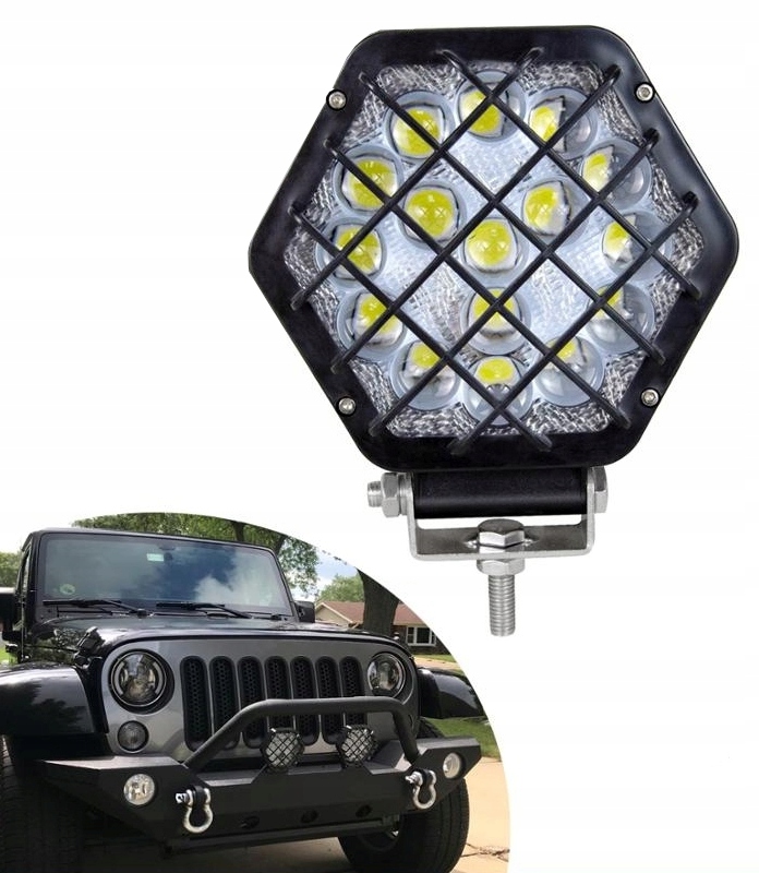 Лампа рабочая 16 led с решётка защитная противотуманная фара