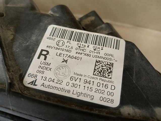Каталожный номер детали: 6V1941016D, LAMPA, PRAWA, REFLEKTOR, PRAWY, SKODA, FABIA, 3, III, LIFT, LED, 2018-