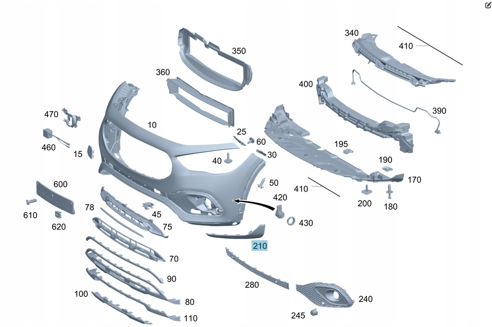 Накладка нижняя бампера перед правая mercedes gla 247