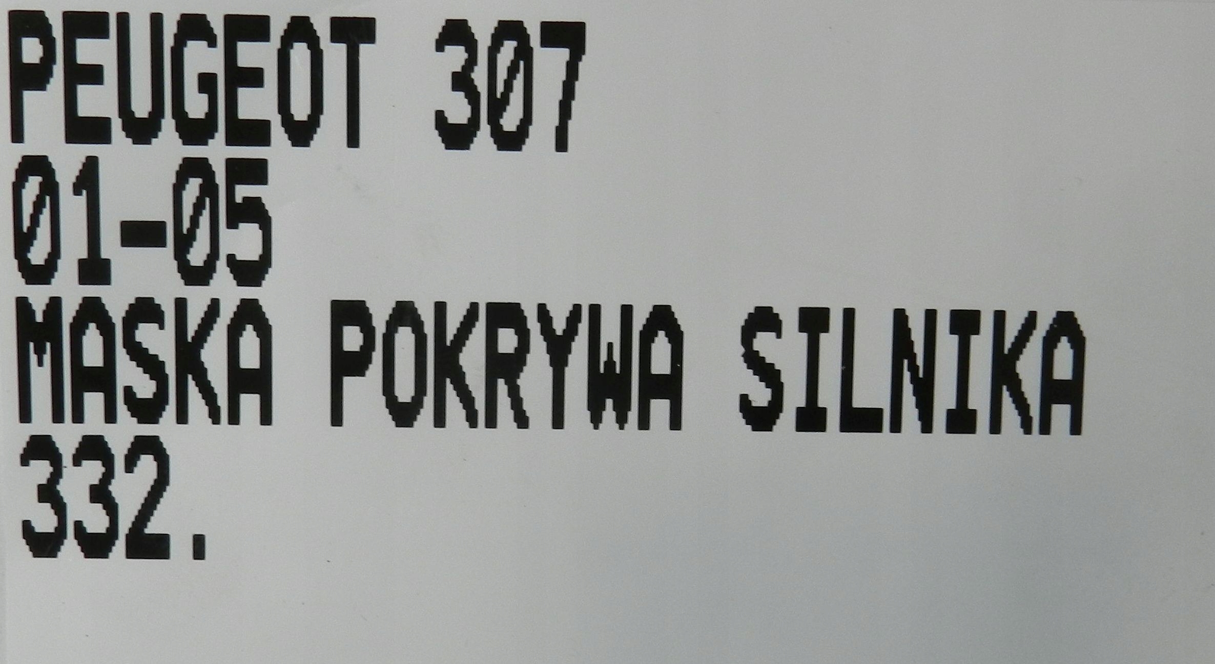 | Каталожный номер детали: | 332.PEUGEOT, 307, 01-05, MASKA, POKRYWA, SILNIKA |