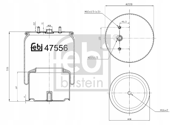 Пневмоподушка подвеска пневматический febi 47556