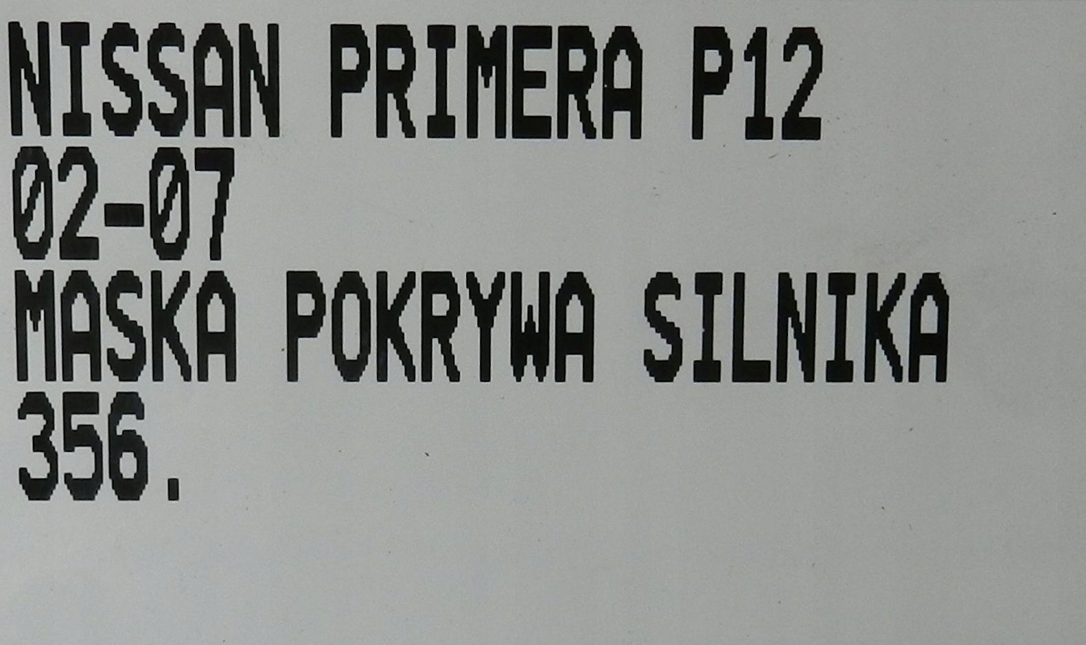 | Каталожный номер детали: | NISSAN PRIMERA P12 02-07 MASKA POKRYWA SILNIKA |