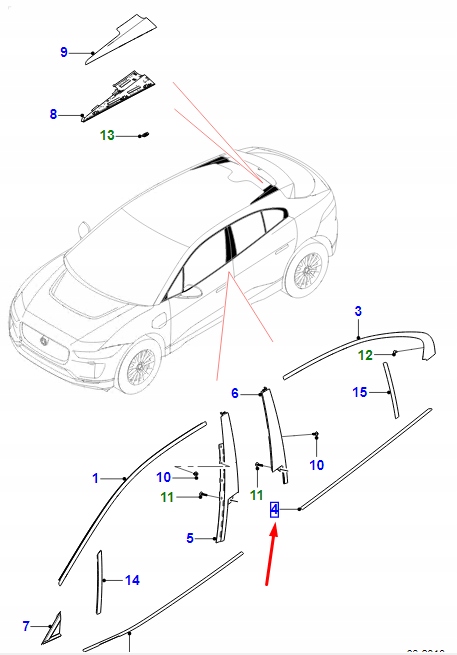 Jaguar i-pace x590 rear left door window полоса t4k8721 original