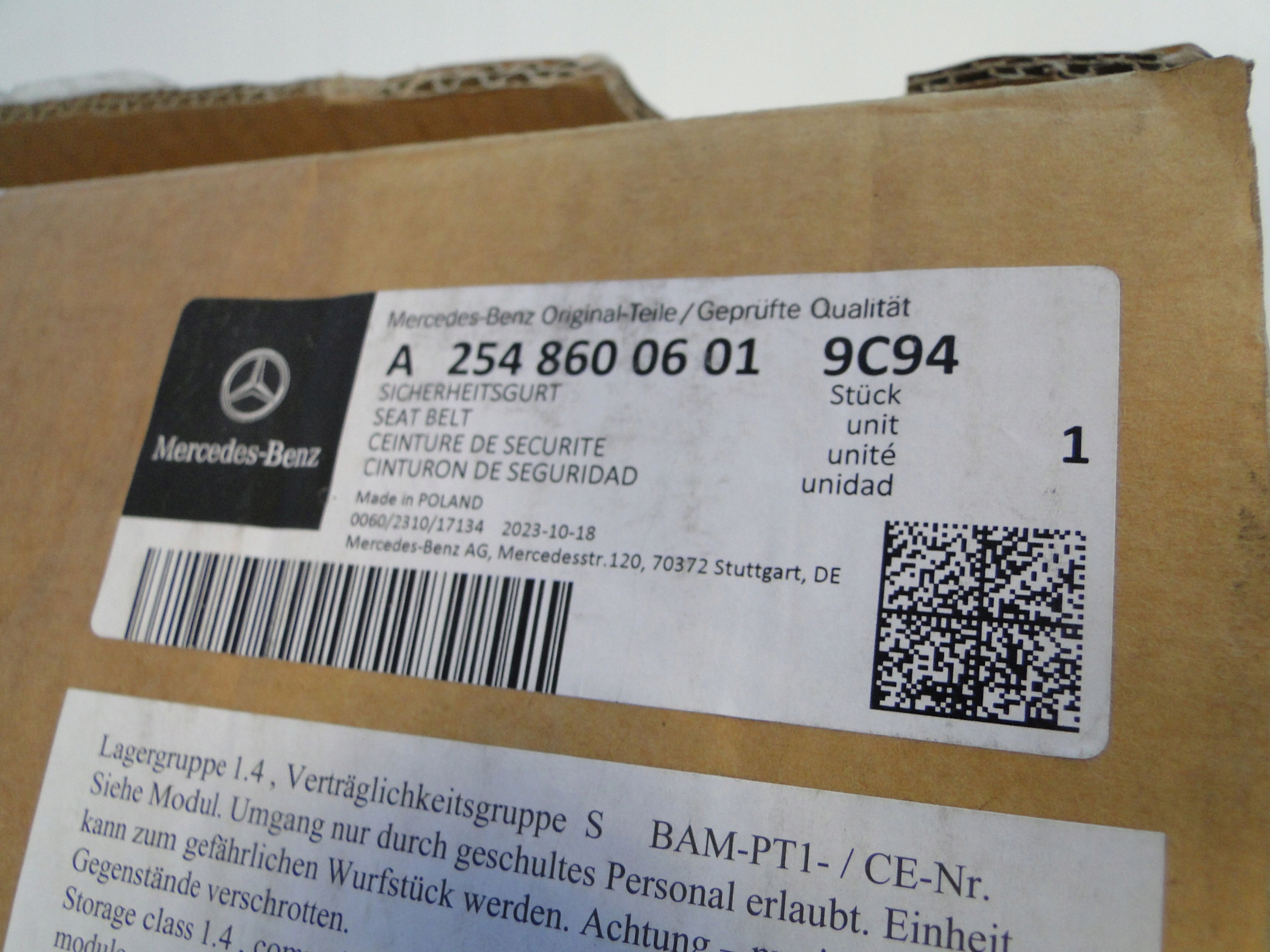 Есть ли гарантия на Mercedes glc 254 x254 suv coupe pas безопасности задний левый чёрный?