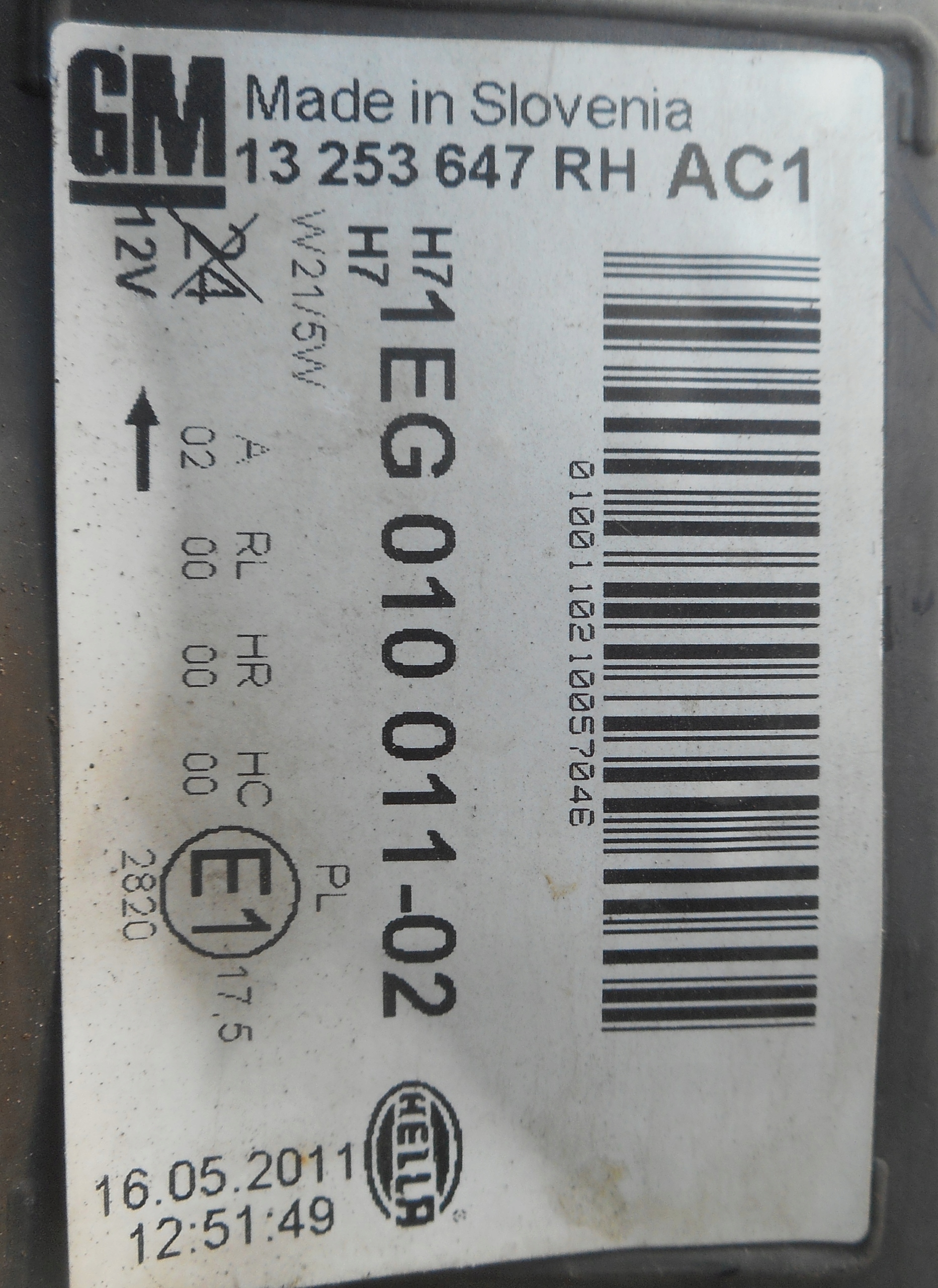 Как проверить совместимость Opel astra vi j лампа правая передняя перед 13253647 с моим авто?