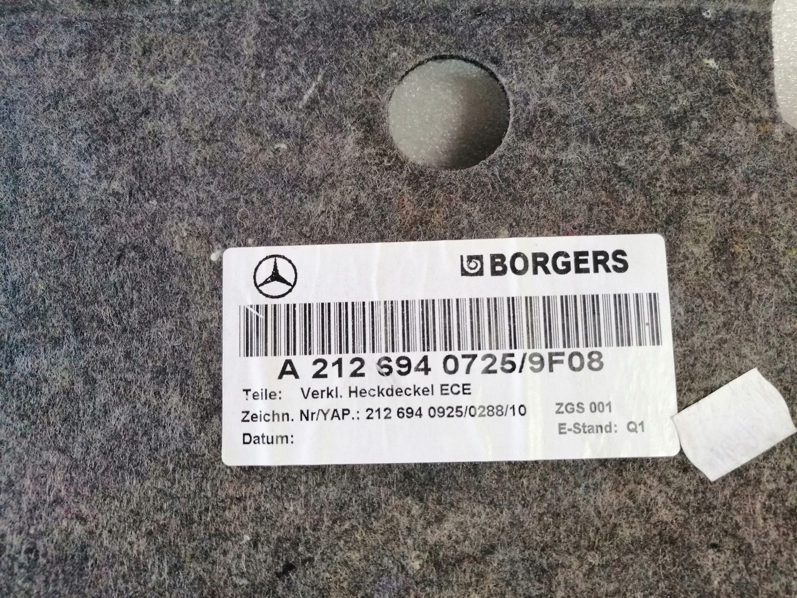 | Каталожный номер детали: | A2126940725, TAPICERKA, KLAPY, BAGAŻNIKA, W212, HMCAR |