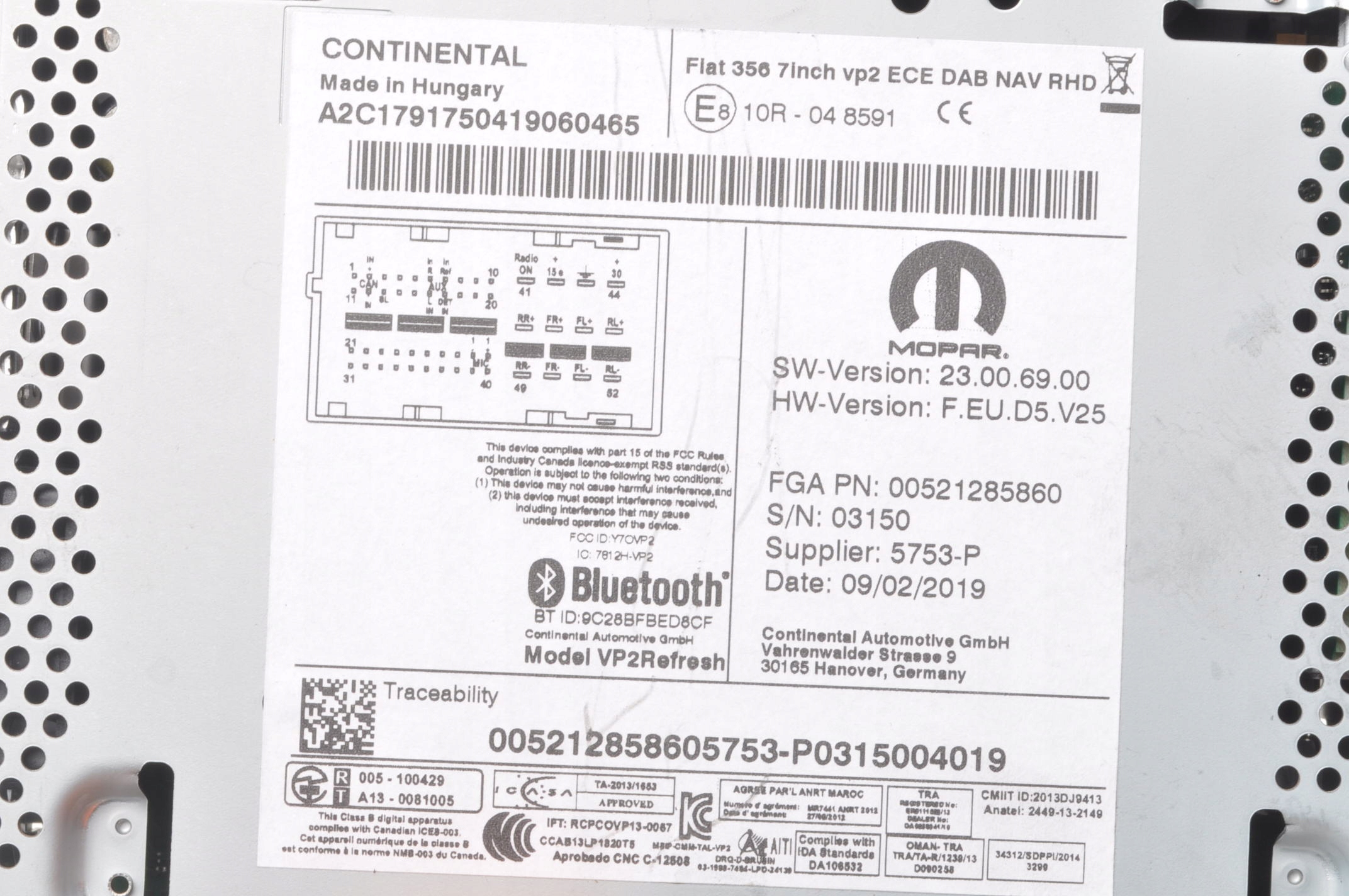 | Каталожный номер детали: | 00521285860 |