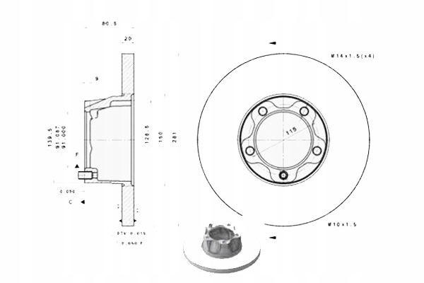 | Typ диск тормозной: | полный |