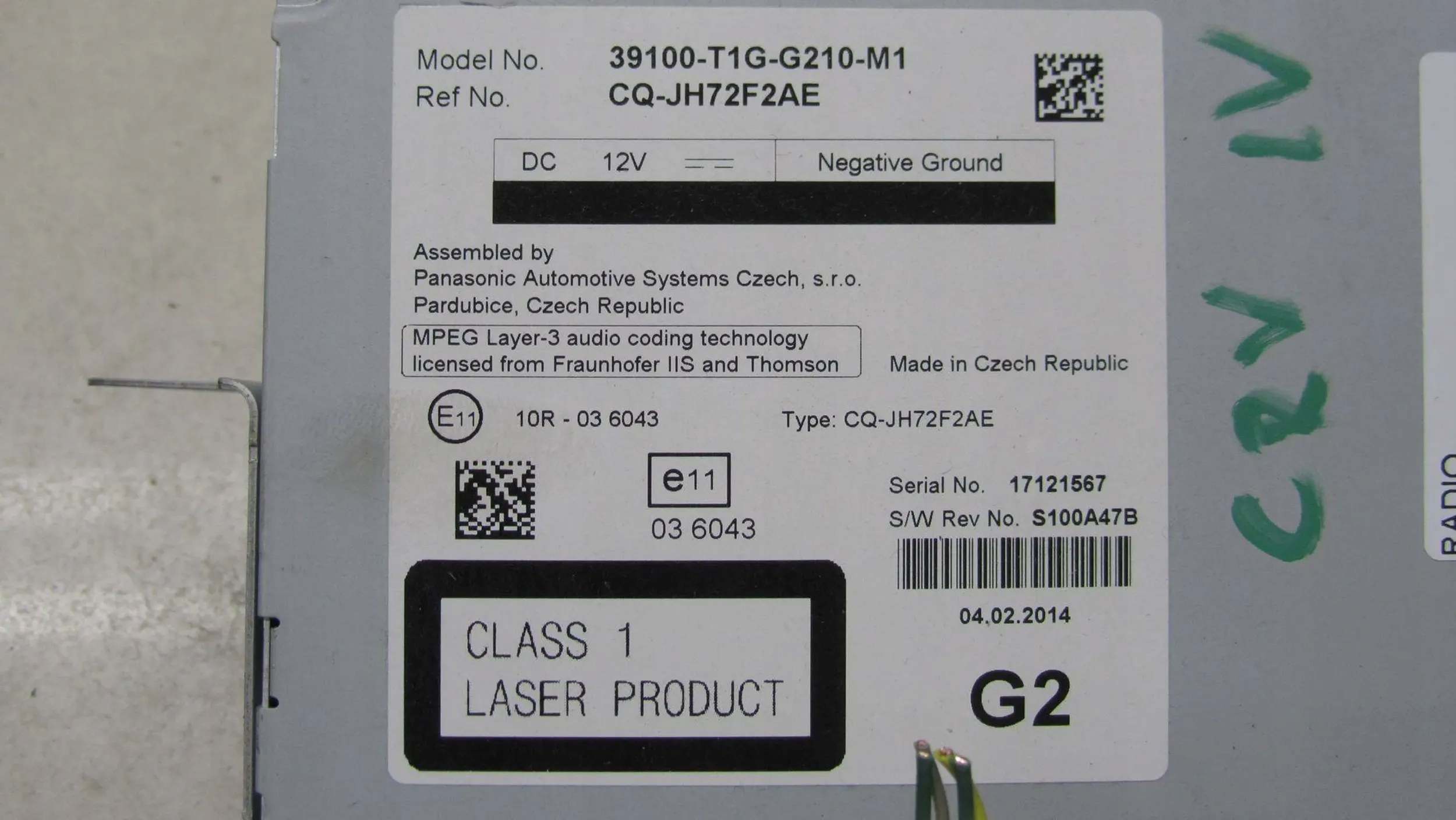 | Каталожный номер детали: | 39100-T1G-G210-M1 |