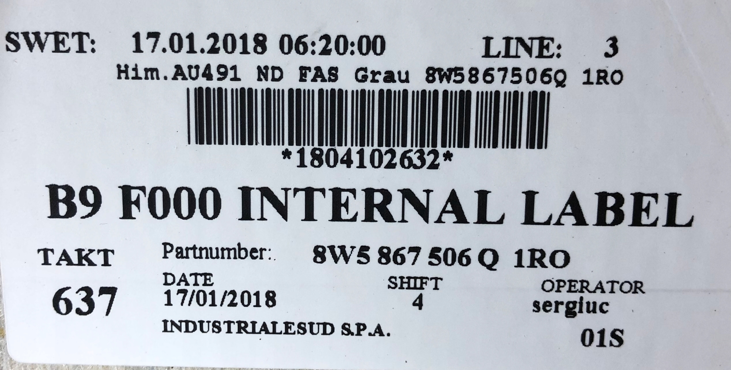 | Каталожный номер детали: | 8W5867506Q |