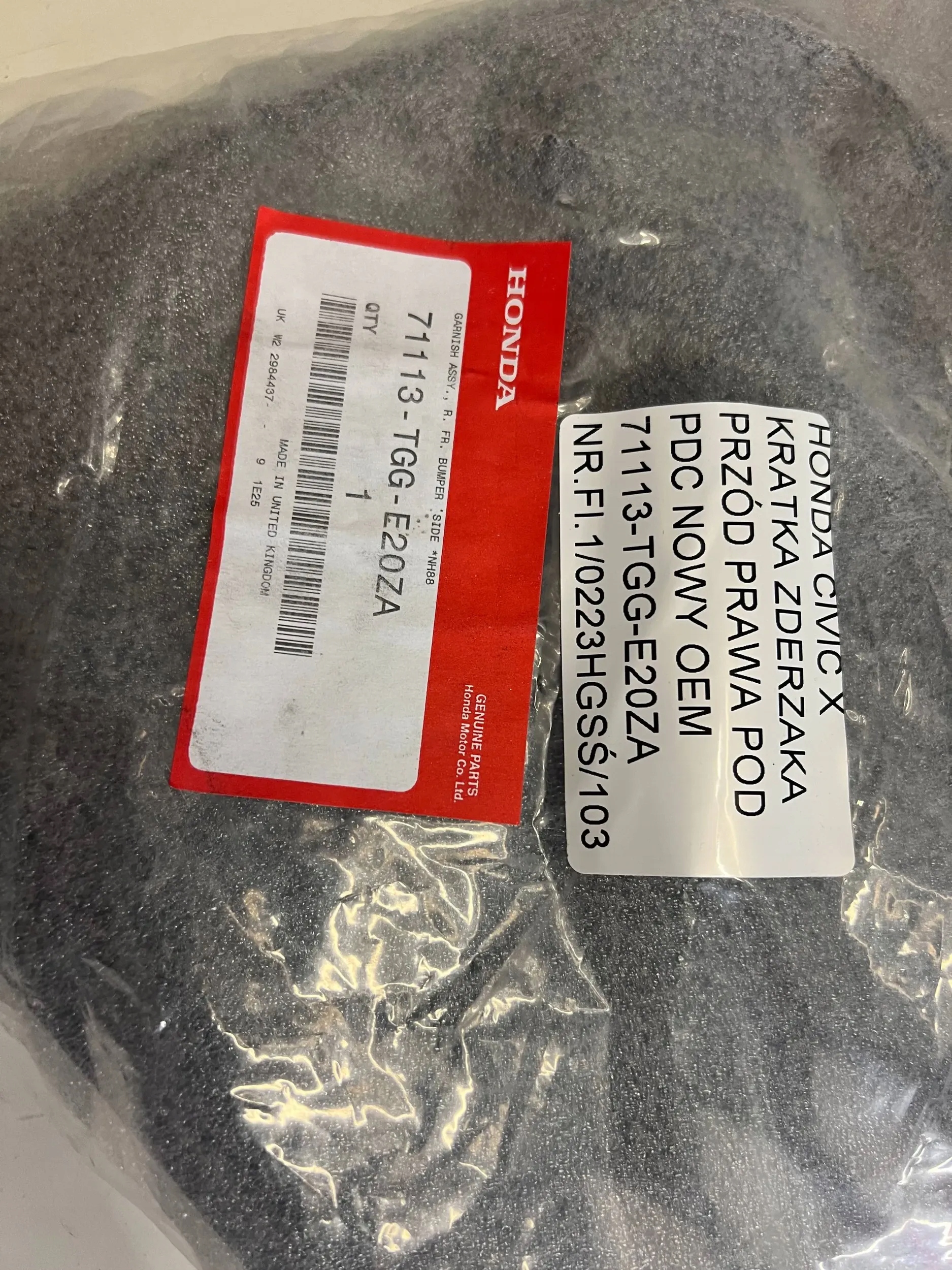 Honda civic x 17- правая заглушка решётка бампера перед pod pdc nowa oem