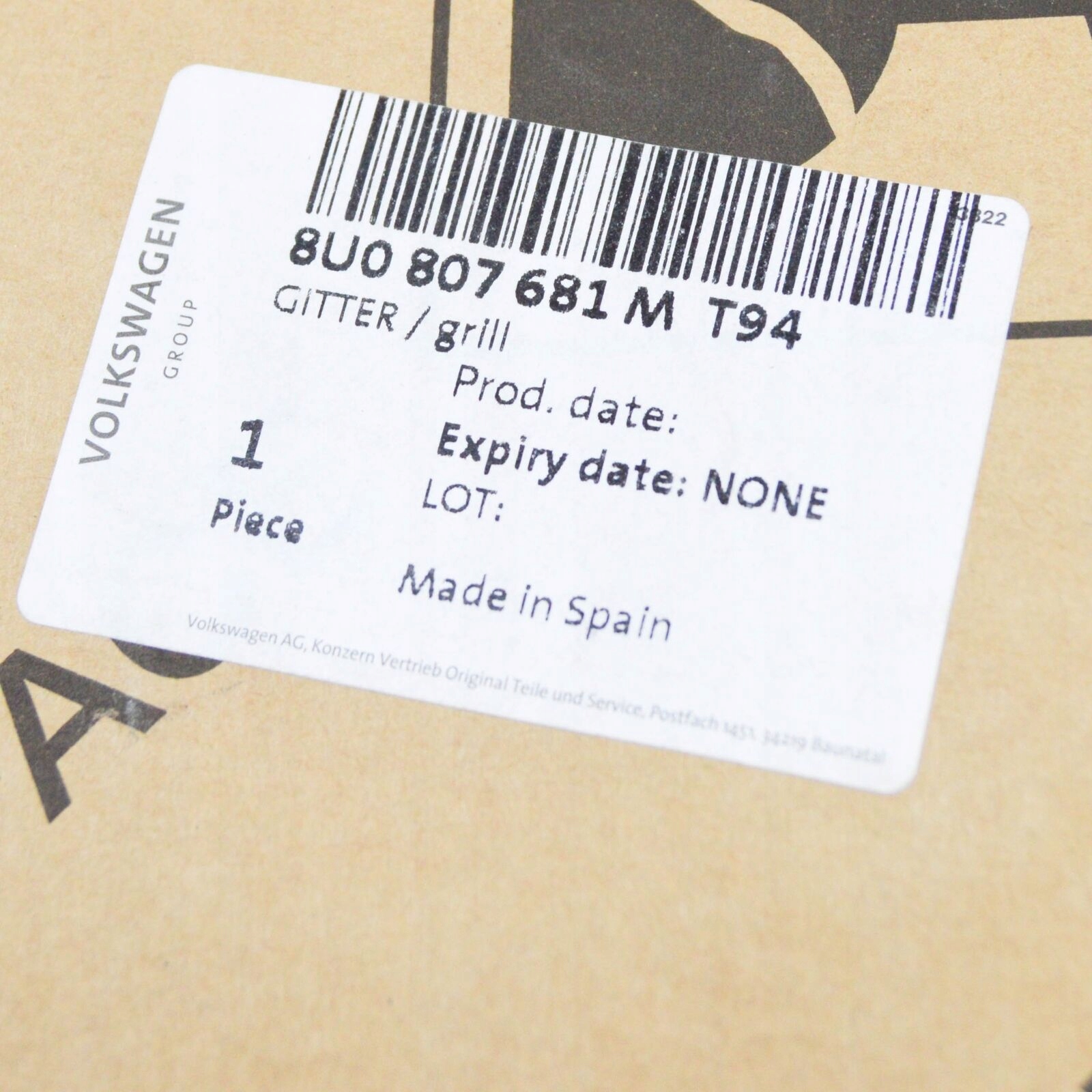 | Каталожный номер детали: | 8U0807681MT94 |
