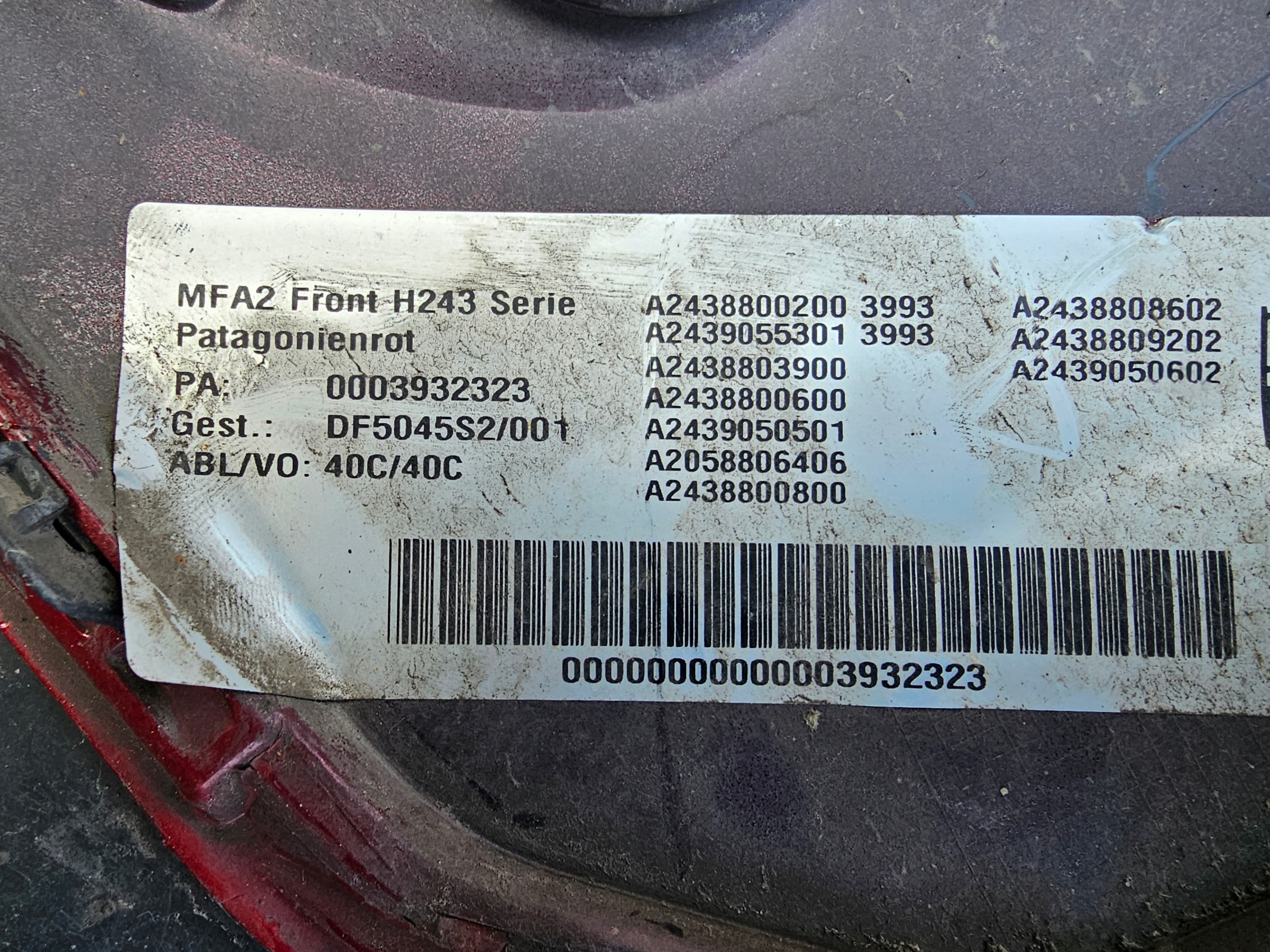 Оригинальный каталожный номер: A243, A2438800200, A2438884200, A2439055301, W243