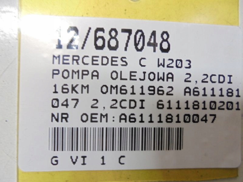 W203 насос масла a6111810047 2,2cdi 6111810201