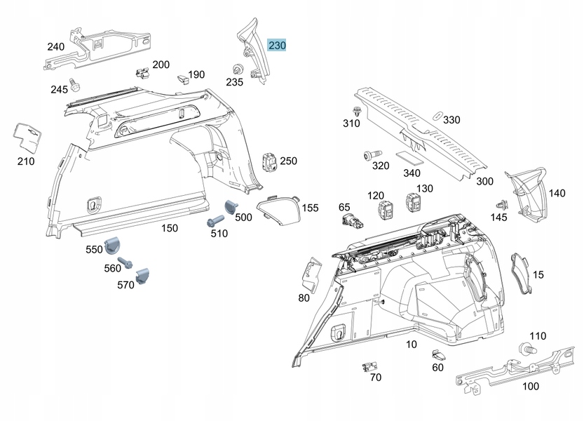 New mercedes-benz glc x253 interior d-pillar панель cover a2536907803