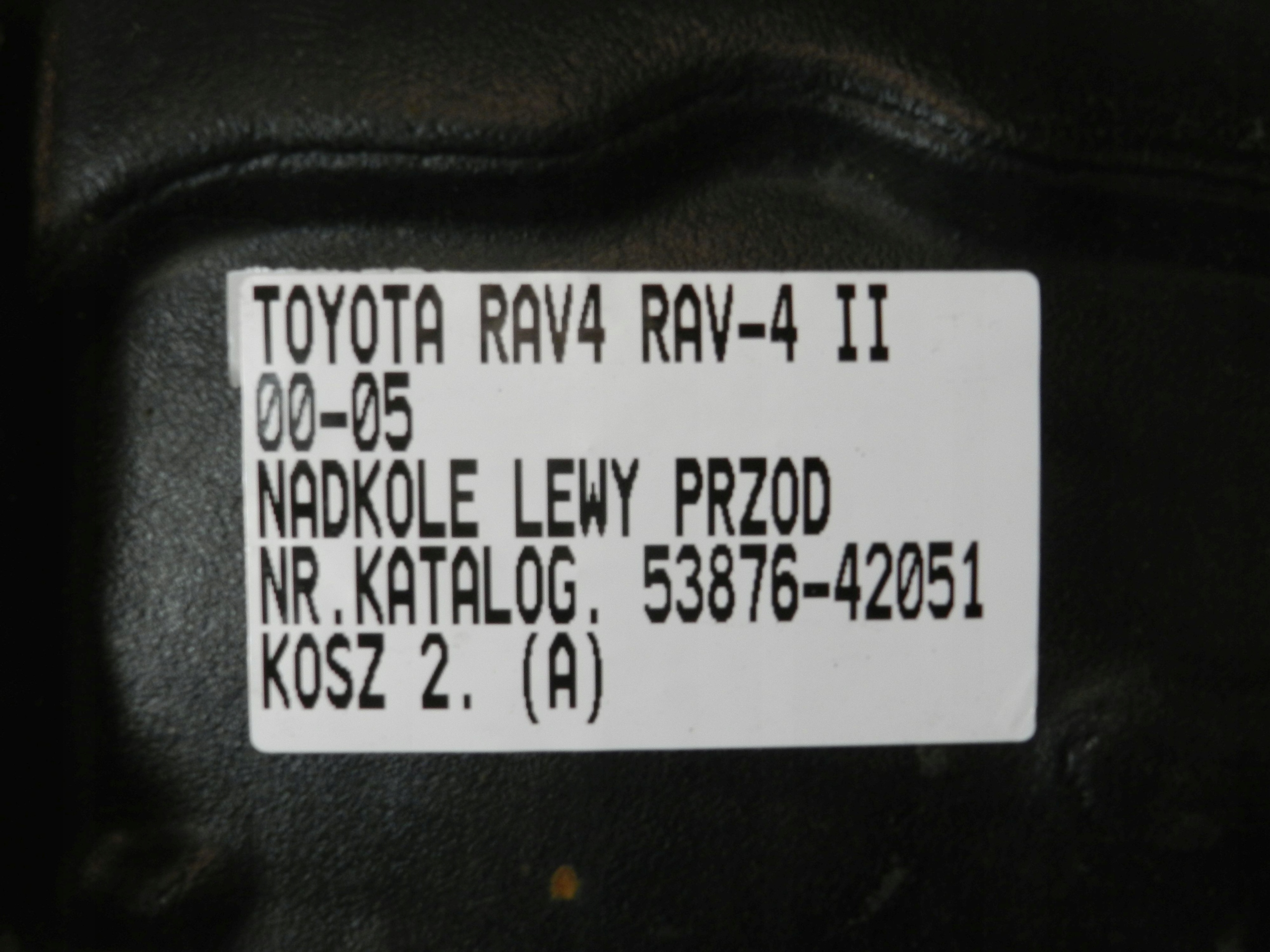 | Каталожный номер детали: | TOYOTA RAV4 RAV-4 II 00-05 NADKOLE LEWE LEWY PRZÓD PRZEDNIE 53876-42051 |