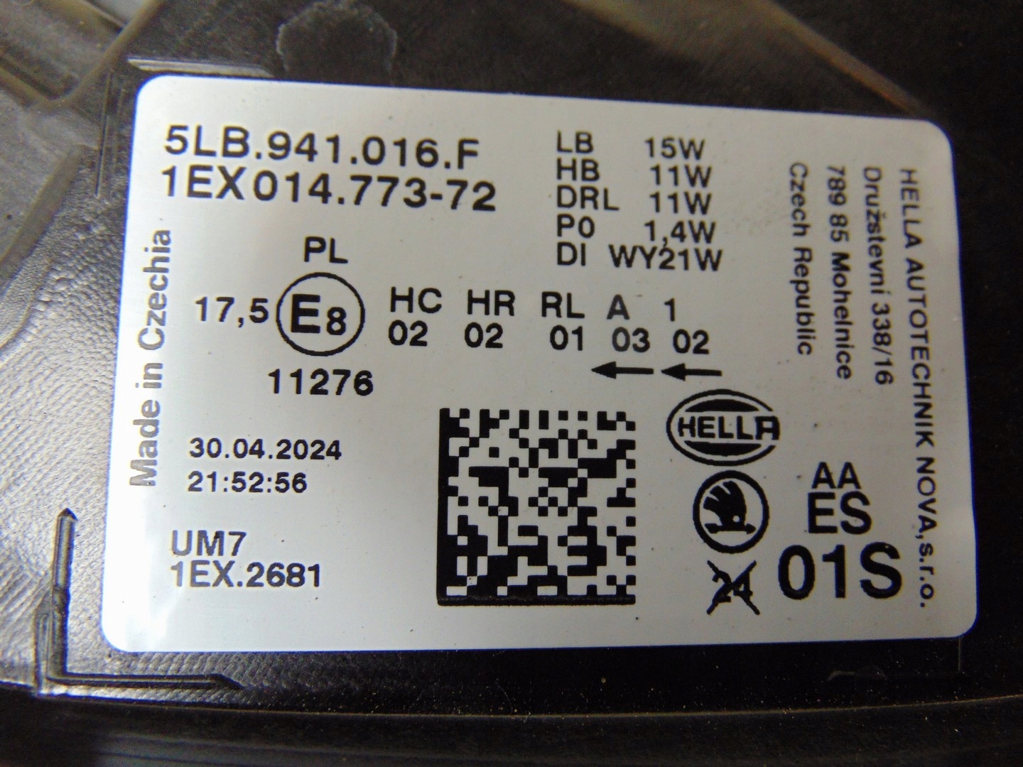 Лампа правая перед skoda enyaq 5lb941016f europa
