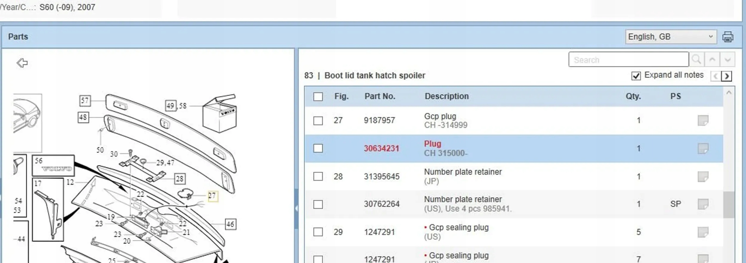 | Каталожный номер детали: | 30634231 |