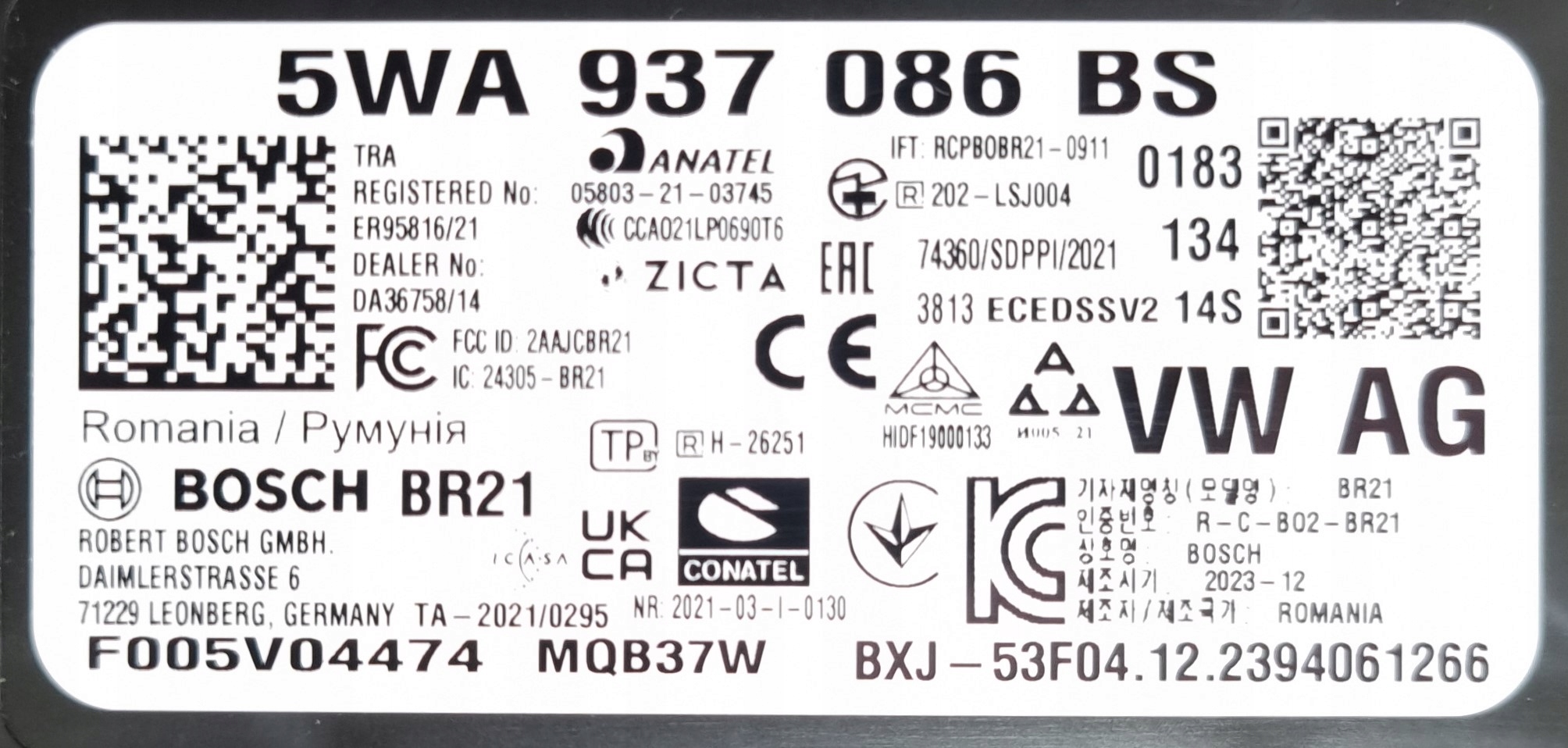 | Каталожный номер детали: | 5WA937086BS |