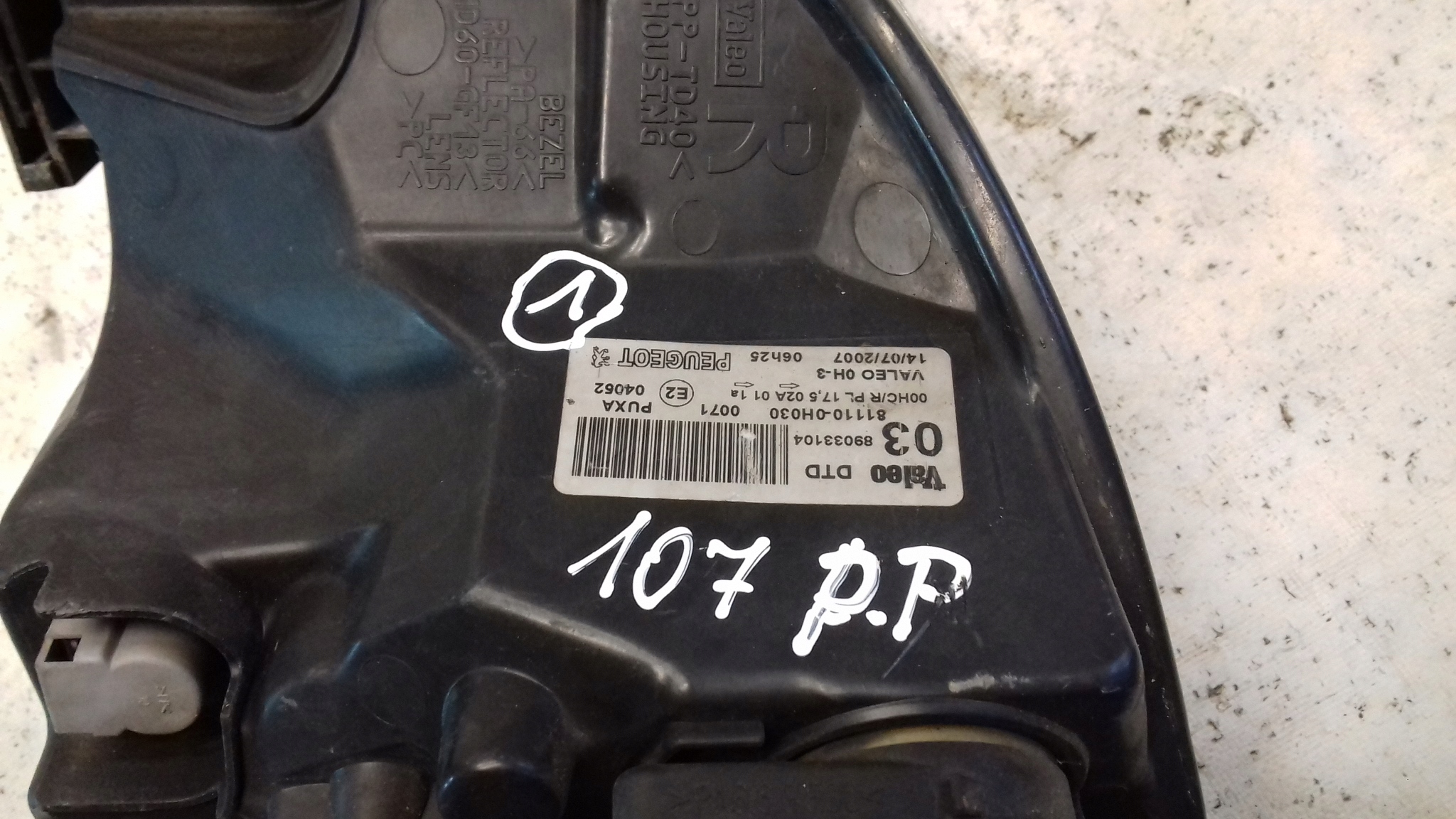 Лампа правый перед передняя 811100h030 peugeot 107 05-12