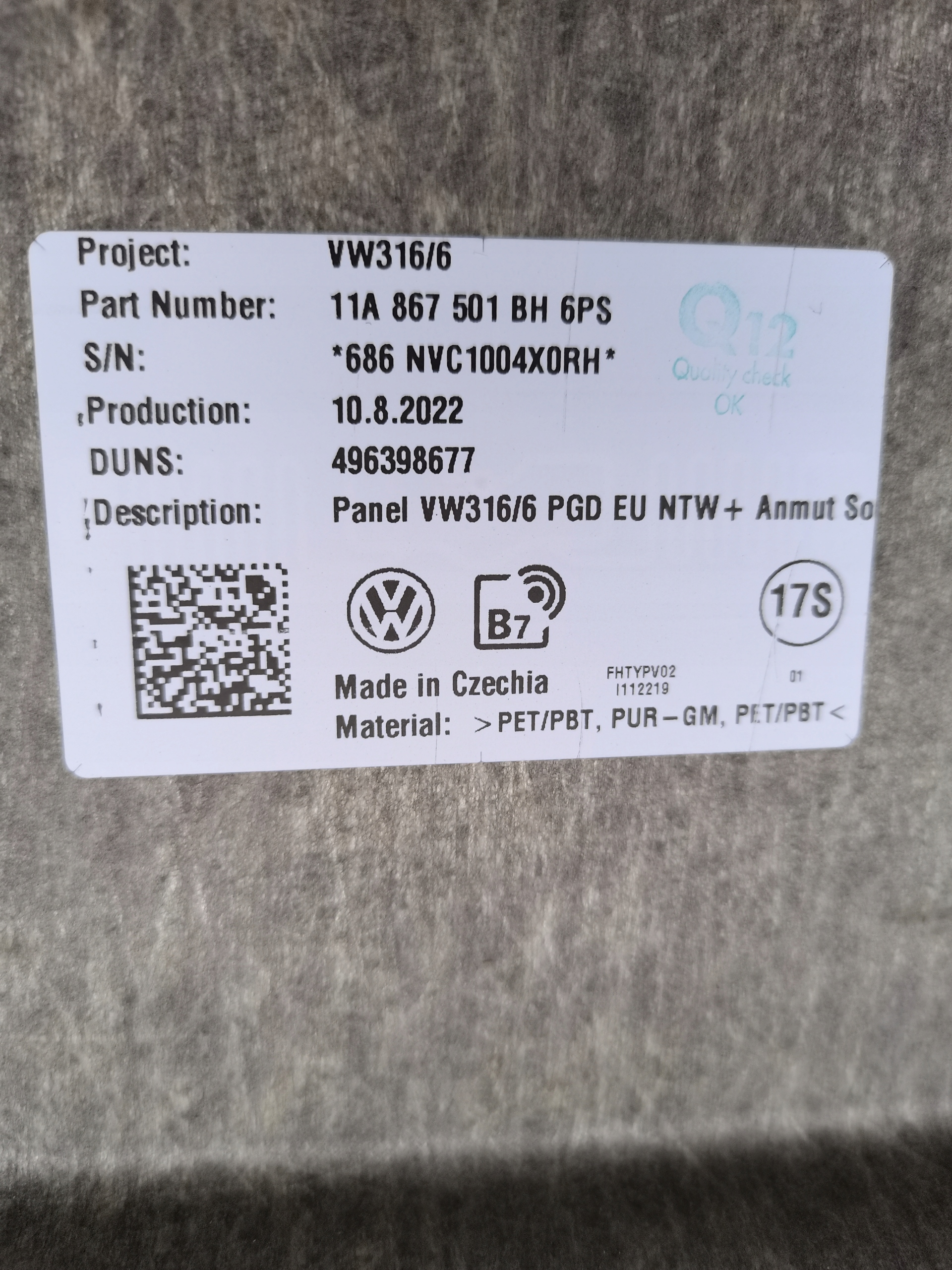 | Каталожный номер детали: | 11A867501BH |