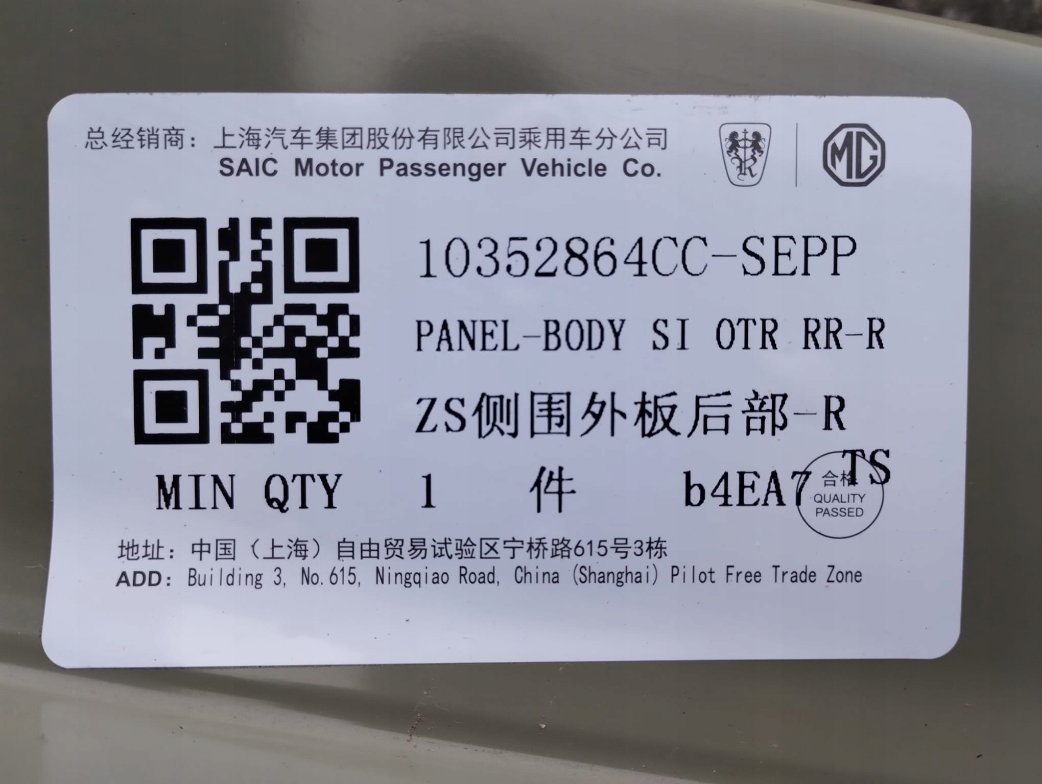 Крыло правый задняя mg zs ev 10352864cc sepp оригинал новый